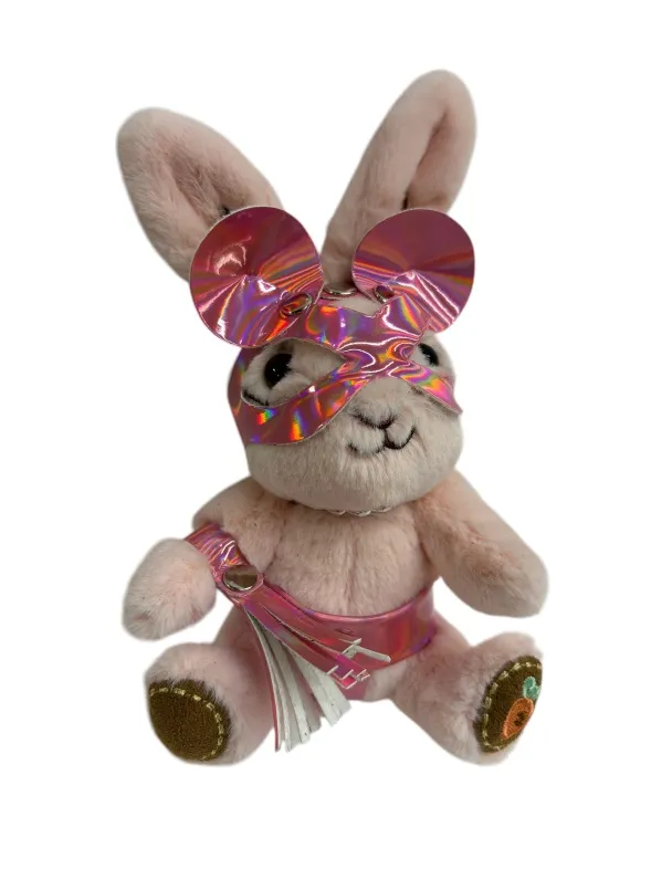 Хитрый зайчик в маске мышки с плетью – забавный и оригинальный аксессуар для любителей БДСМ и для всех страстных неординарных натур. Плеть снимается и может служить отдельным аксессуаром, например, украсит ключи. Игрушка оснащена карабином и кольцом, её можно носить в качестве брелока на ключах или сумке. Высота зайчика 18 см, очень удобный размер. Костюмчик выполнен из лаковой розовой голографической эко-кожи. Цвет зайчиков в ассортименте.