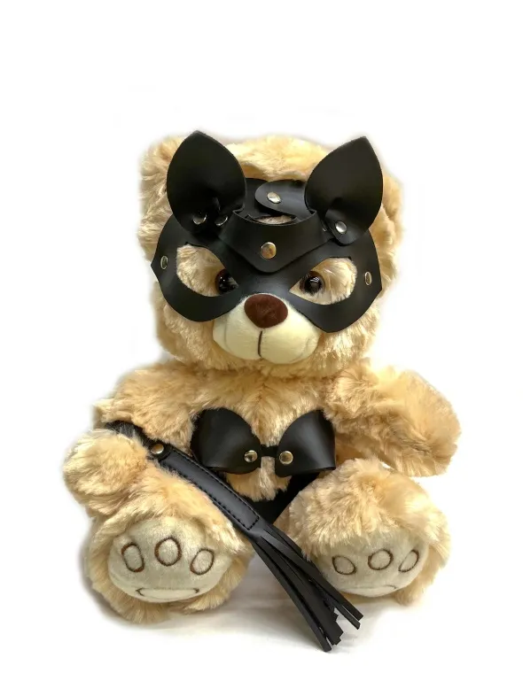 Необычный БДСМ Мишка в образе домины - в маске, белье и с плетью - идеальный вариант, чтобы порадовать ценителей оригинальных подарков.  Высота мишки 30см. Костюмчик выполнен из искусственной кожи.