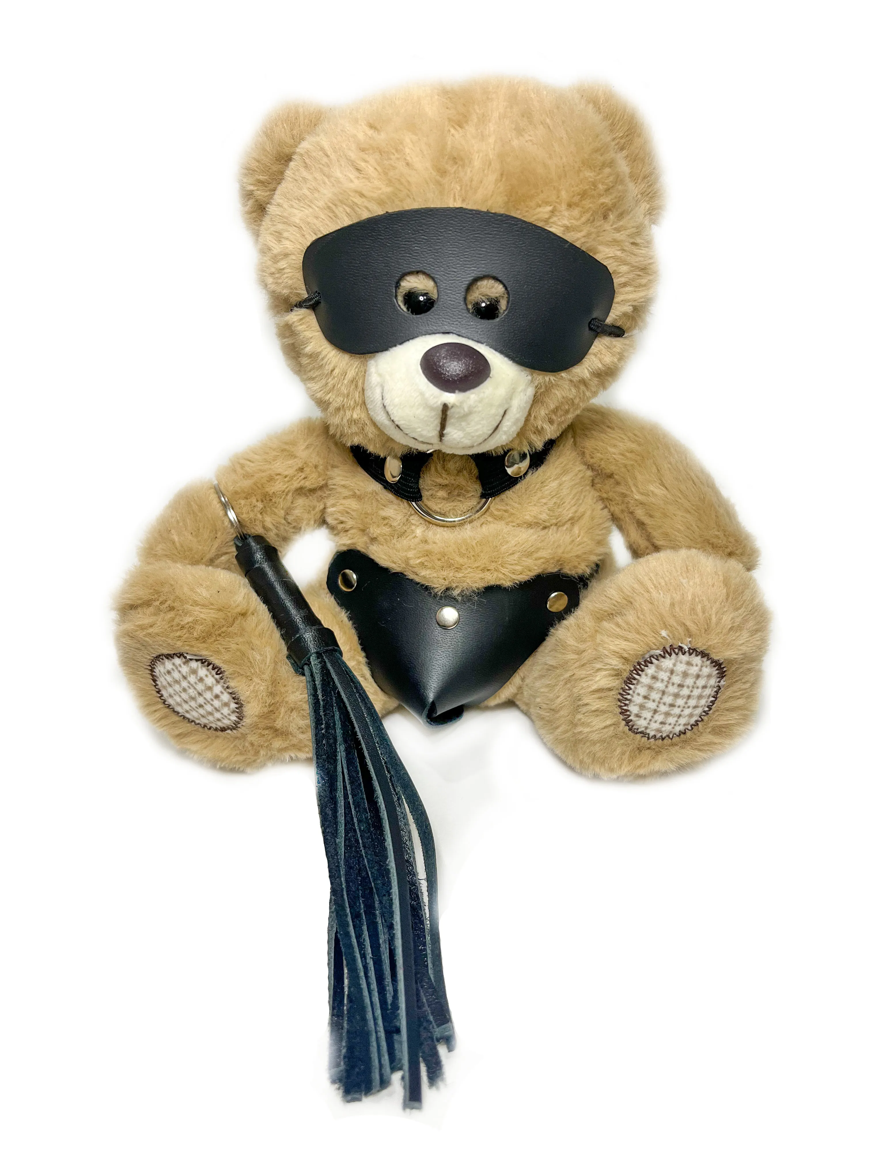 Миниатюрный БДСМ Мишка  в очень интересном образе. Великолепная идея для подарка или оригинального элемента в интерьере. Этот малыш сразит Вас своим обаянием! Деталь, заслуживающая отельного внимания - плеть, которая является самостоятельным брелком, ее можно повесить на сумку, на ключи или любой другой аксессуар по Вашему желанию. Высота медвежонка 20см. Костюмчик выполнен из искусственной кожи. Цвет мишек серый