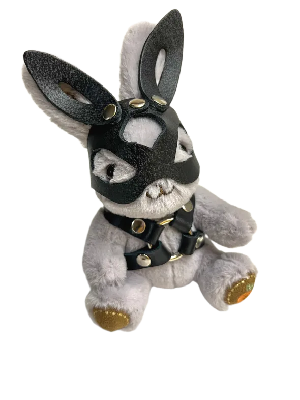 Таинственный зайчик в маске удивит и намекнет на темпераментность дарителя. Снаружи брутальный, а внутри нежный пушистик точно понравится Вашей зайке))) Игрушка оснащена карабином и кольцом, её можно носить в качестве брелока на ключах или сумке. Высота зайчика 18 см, очень удобный размер. Костюмчик выполнен из натуральной кожи.