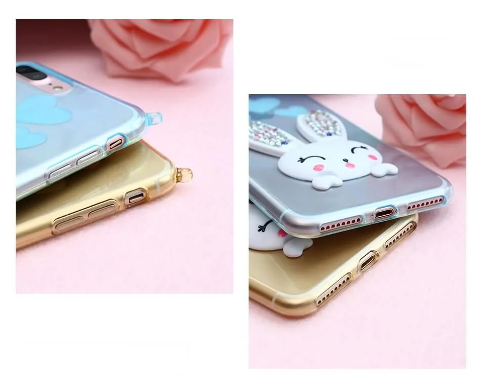 Очаровательный чехол розового цвета для iPhone 6/6S станет еще одной запоминающейся деталью Вашего яркого образа! Сзади чехол декорирован милым зайчиком, благодаря которому аксессуар выглядит невероятно мило. Ушки зайчика украшены сияющими стразами, весело переливающимися на свету. Также благодаря небольшому колечку к чехлу можно прикрепить дополнительные украшения, например брелок.