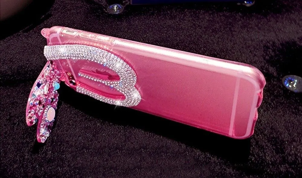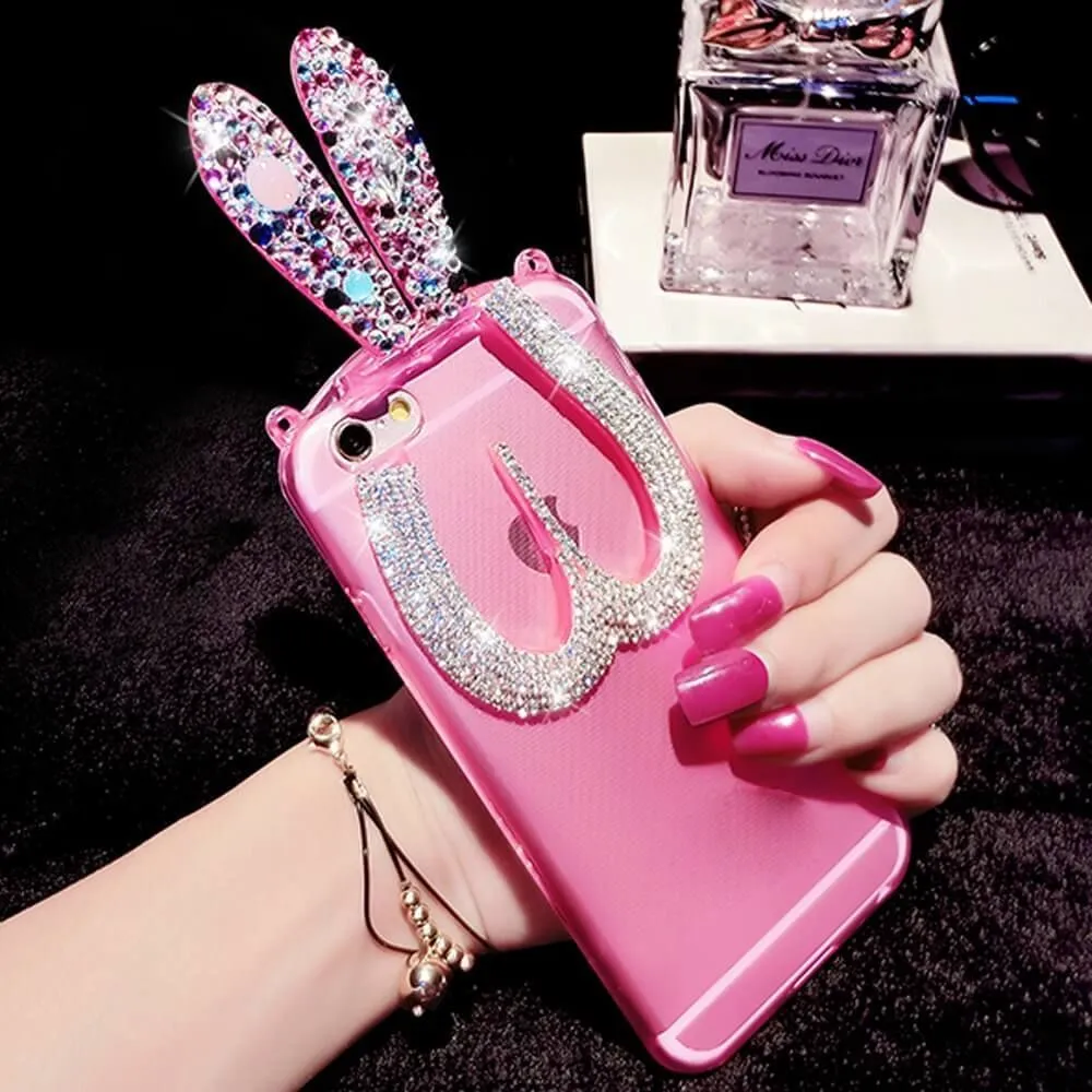 Очень милый чехол для iPhone 5/5S украсит собой Ваш телефон, буквально превратив его в сияющую драгоценность. Ушки зайки с переливающимися стразами будут ярко сверкать на свету, привлекая внимание. При необходимости ушки можно сложить, чтобы чехол стал более компактным. Также благодаря двум небольшим колечкам к чехлу можно прикрепить дополнительные украшения, например брелки.