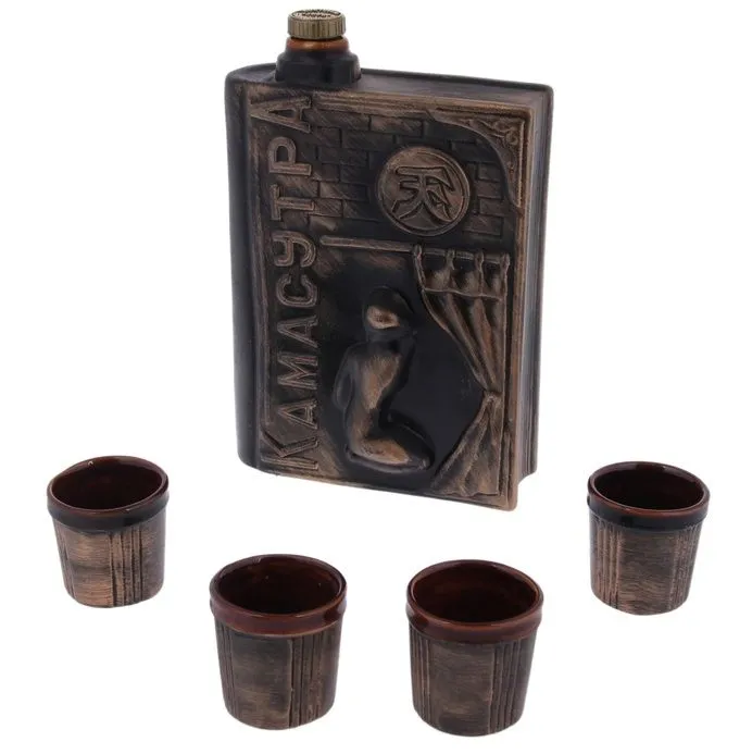Штоф — это сосуд для крепких спиртных напитков. Он предназначен для хранения вина, водки, коньяка и настойки. К нему прилагаются оригинальные рюмки соответствующей тематики.Набор изготовлен из керамики — прочного материала, способного сохранять температуру жидкости до 4 часов, поэтому вы сможете наслаждаться охлаждёнными напитками даже во время долгих застолий.