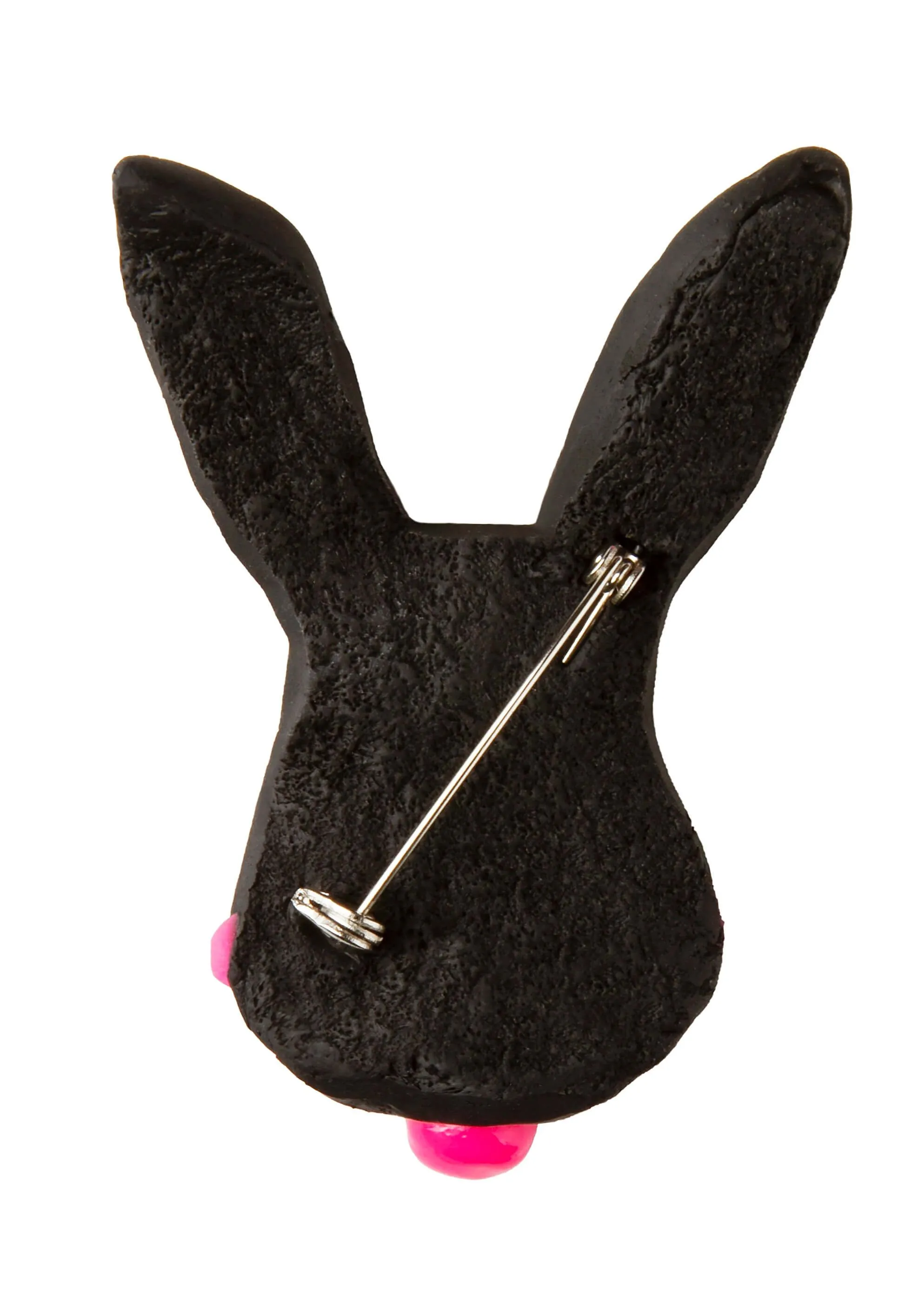 —Брошь Черный кролик с розовым кляпом на булавке