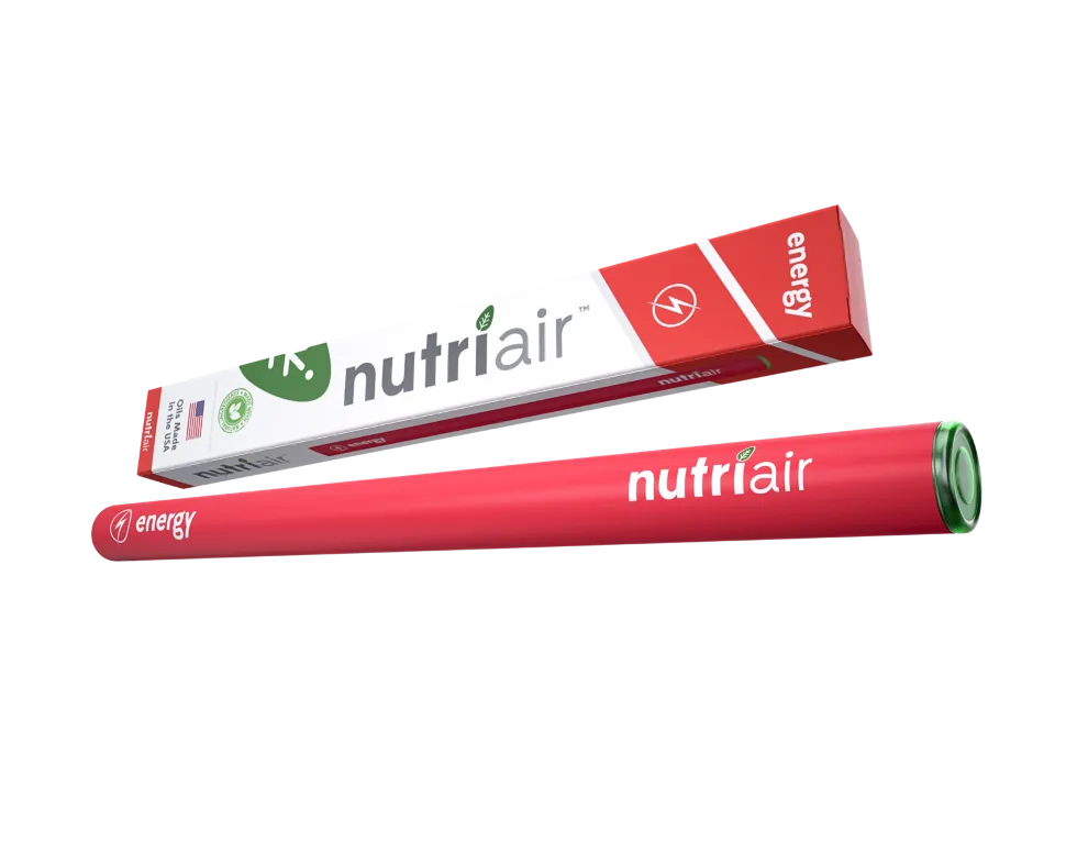 Nutriair Energy — ингалятор, содержащий кофеин для повышения энергии, альтернатива потреблению энергетических напитков и кофе. Улучшает работоспособность, концентрацию внимания и помогает бороться с усталостью. Легко помещается в карман.