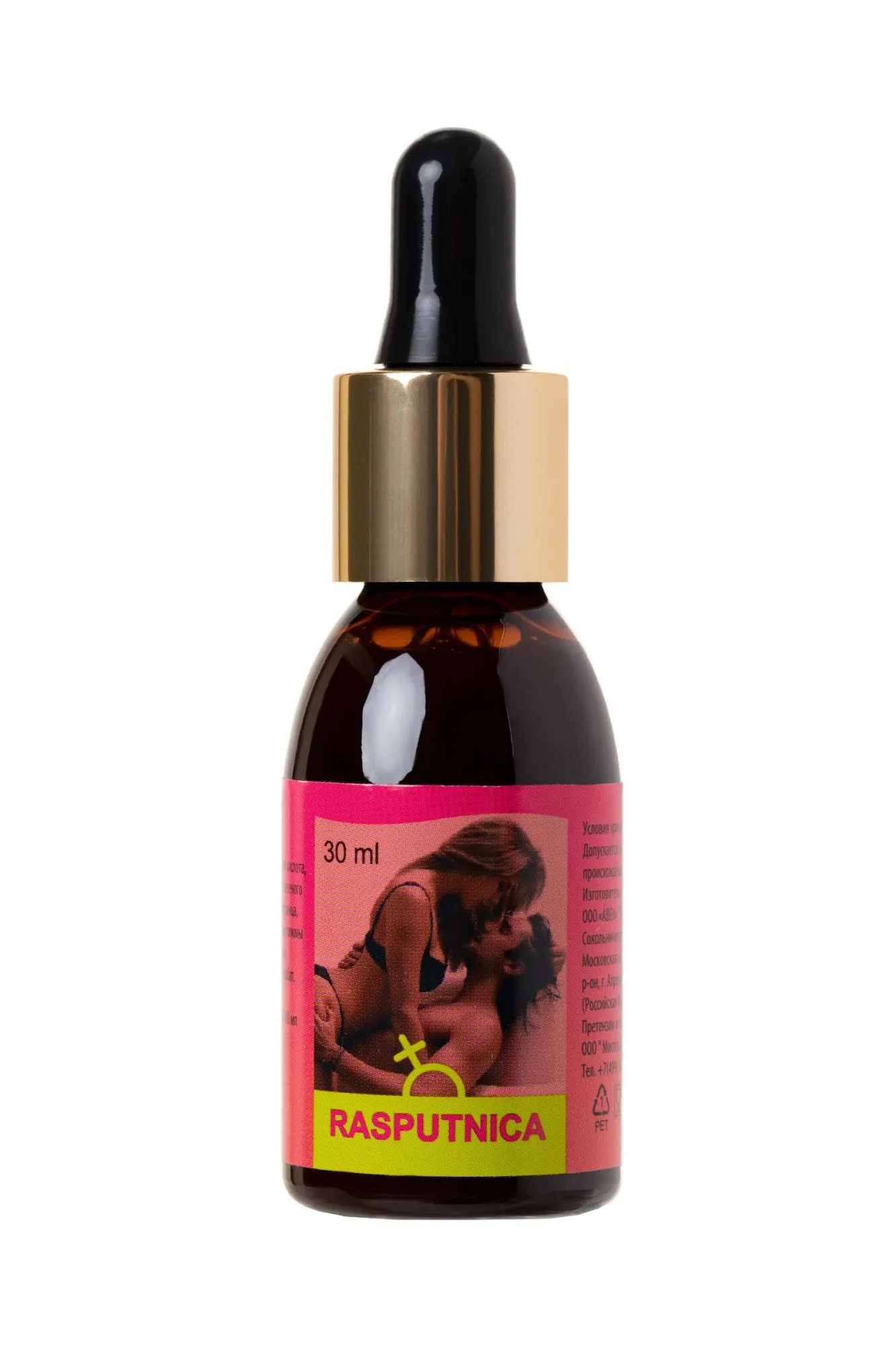 RASPUTNICA – возбуждающие капли, которые воздействуют на женский организм, тонизируют и пробуждают чувственность, усиливают чувствительность во время полового акта. Натуральные компоненты препарата вызывают у женщин мощное половое возбуждение, и усиливает влечение к мужчине. Помимо этого средство позволяет получить больше удовольствия от секса - L-аргинин и корень женьшеня стимулируют микроциркуляцию в области половых органов и обеспечивают приток крови к ним, что усиливает приятные ощущения и способствует достижению оргазма. Рекомендуется взрослым женщинам для повышение либидо и дополнительного возбуждения. Рекомендации по применению: 45 капель(3 мл) концентрированного напитка развести в 100-200 мл воды или любого безалкогольного напитка. Перемешать, дождаться полного растворения содержимого(1-2 минуты) и выпить за 30 минут до полового акта. Не принимать в вечернее время. Состав: вода, регулятор кислотности лимонная кислота, L-аргинин, растительные экстракты (листьев зеленого чая, корней женьшеня, плодов гуараны, померанца, муира пуама, листьев грецкого ореха, цветков пижмы обыкновенной, листьев мяты перечной, травы лабазника вязолистного), консервант калия сорбат. Противопоказания: Индивидуальная непереносимость компонентов. Форма выпуска: флакон-капельница 30 мл БАД, НЕ ЯВЛЯЕТСЯ ЛЕКАРСТВОМ.