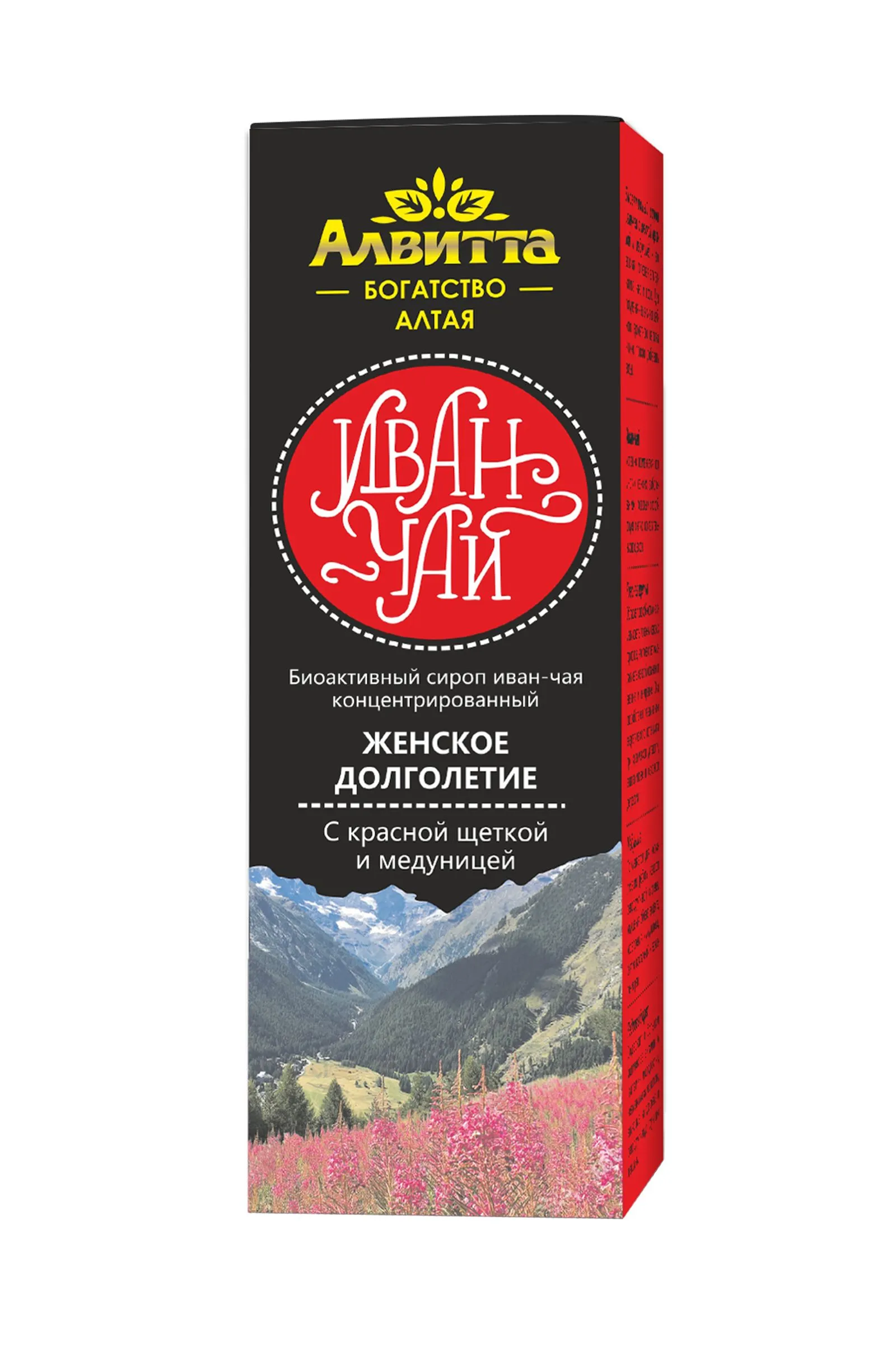 Биоактивный сироп иван-чая “Женское долголетие” с красной щеткой и медуницей – это вкусный напиток с нотками меда, обладающий общеукрепляющим и противовоспалительным действием. “Женское долголетие” способствует нормализации работы женской репродуктивной системы, позволяя в любом возрасте оставаться молодой, привлекательной и сексуальной. Сироп иван-чая с красной щеткой и медуницей – это не только вкусный, но и полезный напиток, который удобно взять с собой на работу, в гости или путешествие. Иван-чай из ферментированных листьев имеет мягкий цветочно-фруктовый вкус и травянистый аромат летнего луга. На Руси его считали универсальным лекарством. Красная щетки и медуница – это «женские» растения, которые способствуют нормализации работы женской репродуктивной системы. Активные компоненты: ферментированный лист иван-чая, кедровый орех, красная щетка (родиола четырехчленная), медуница Иван-чай успешно применяется при многих женских заболеваниях, поскольку способствует снятию воспалительных процессов. Красная щетка обладает способностью нормализовать уровень женских гормонов, что позволяет омолаживать женский организм и внешне и внутренне. Она способствует увеличению энергетического потенциала при хронической усталости, авитаминозе и сезонной депрессии. Медуница применяется для нормализации работы женской репродуктивной системы, улучшения обмена веществ, укрепления иммунитета, снятия воспалений и заживления ран. Кедровый орех содержит в большом количестве витамин А (витамин молодости), незаменимые аминокислоты, влияющие на здоровье и репродуктивную функцию женщины. Рекомендации по применению: по 1-2 чайные ложки сиропа (5-10 мл) добавлять в напитки (чай, кофе, вода) для усиления вкуса и обогащения организма природными компонентами. Пищевая ценность на 100 г продукта: углеводы 65,0 г. Энергетическая ценность на 100 г продукта: 260 ккал/ 1085 кДж. Продукт не содержит ГМО. Условия хранения: хранить в защищенном от прямых солнечных лучей и недоступном для детей месте, при температуре не выше 25°С и относительной влажности не более 75%. После вскрытия хранить в холодильнике не более 3 месяцев. Срок годности: 18 месяцев. Объем: 200 мл