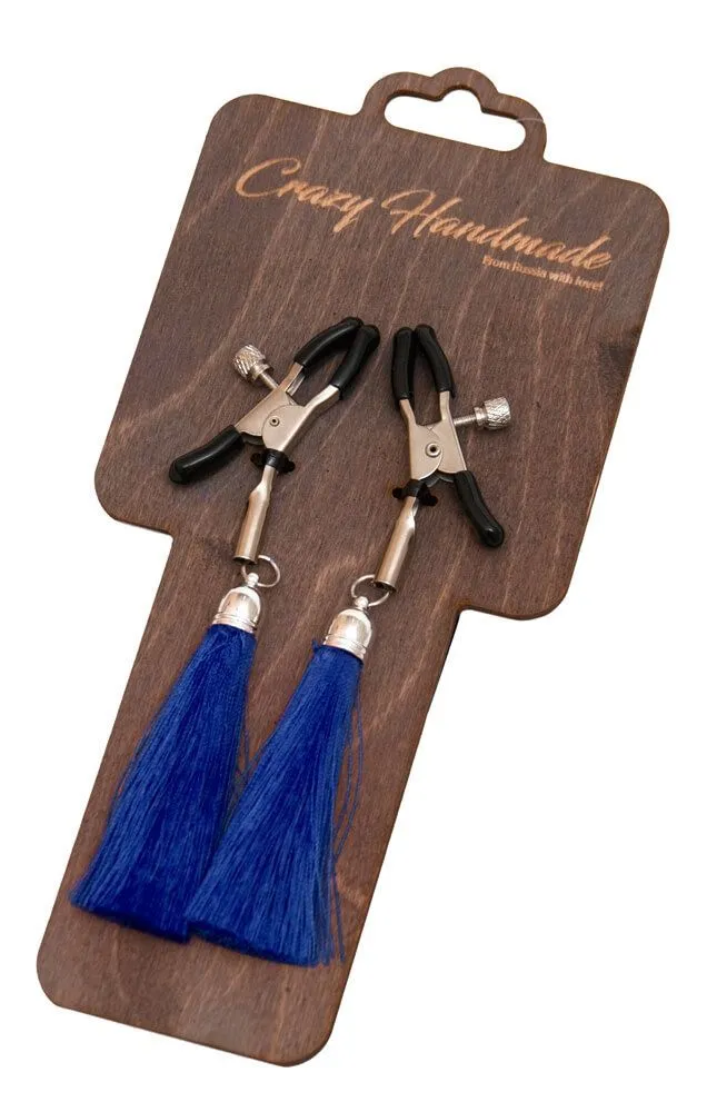 Зажимы на соски PinkRabbit с кисточками из шелка, синие