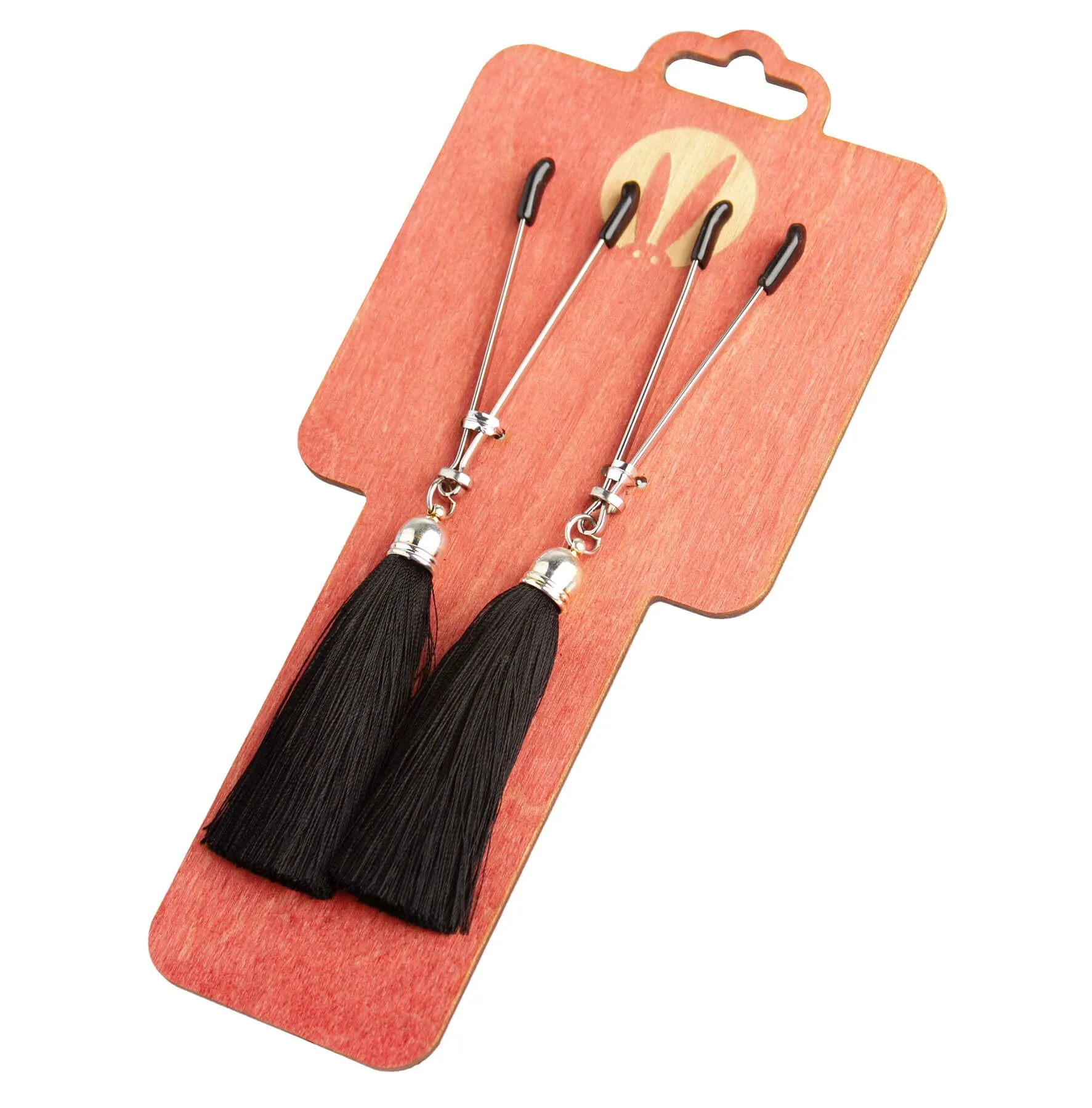 —Зажимы-вилки на соски PinkRabbit с кисточками из шелка, черные