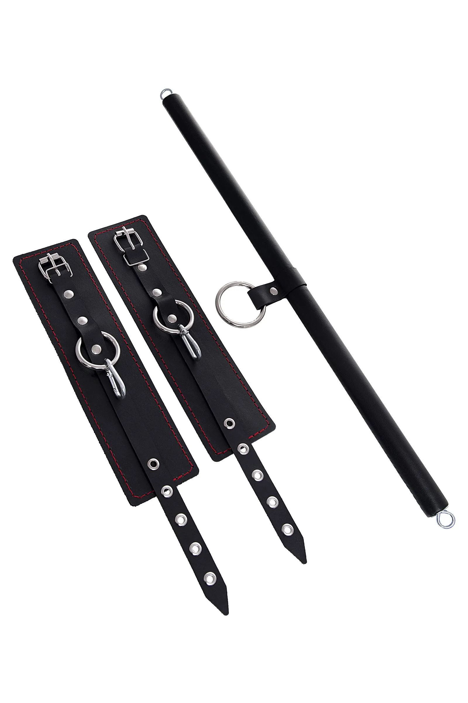 Бондажный набор Pecado BDSM, 3 точки фиксации, распорка, оковы, натуральная кожа, черный