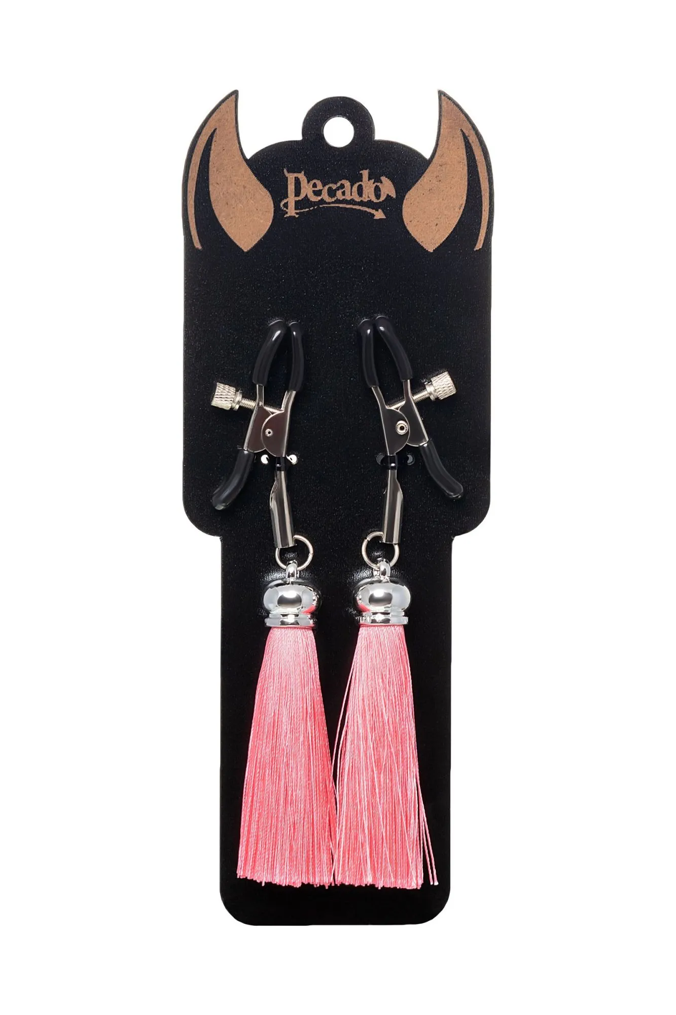Хотите усилить ощущения от страстных игр с партнером? Увеличить степень возбуждения до невозможного можно с помощью зажимов-прищепок ручной работы от Рecado. Невероятно сексуальный аксессуар пробудит фантазию и повысит чувственность эротических зон. Мягкие резиновые накладки оберегают соски от повреждений. Металлический винт регулирует степень сжатия зажимов: от нежно-приятного до сильно-грубого. На концах черные резиновые наконечники, для безопасного воздействия на нежные участки тела. Компактный размер удобно вмещается как в женскую, так и в мужскую руку. Кисточки из натурального шелка не только визуально украшают эротический атрибут, но и еще утяжеляют его. Для самых смелых и искушенных любителей доминировать и подчиняться. ● Ручная работа. ● Надежная высококачественная фурнитура. ● Общая длина зажимов 14 см, длина кисточки 8,5 см. ● Не требуют специального ухода.