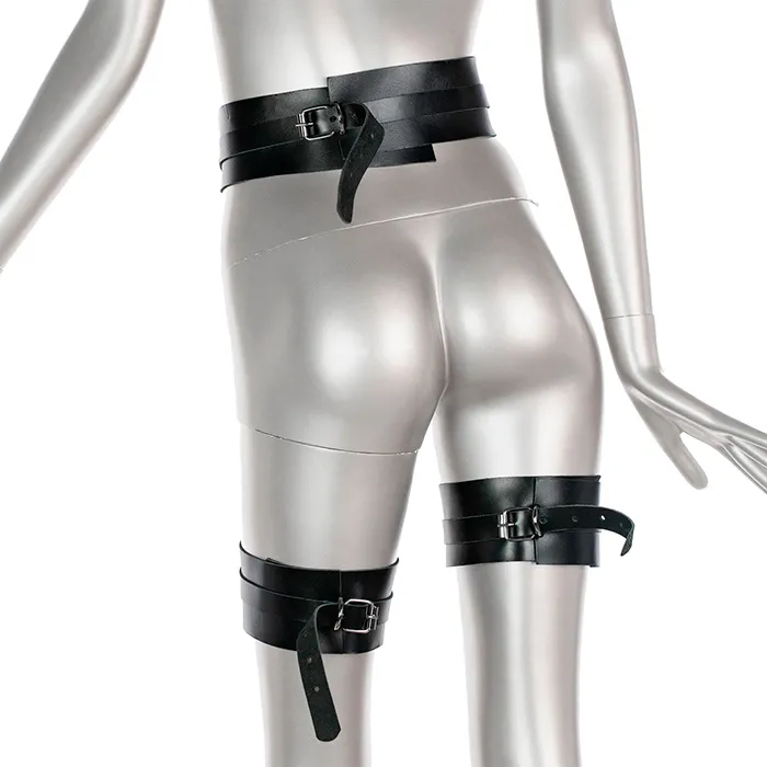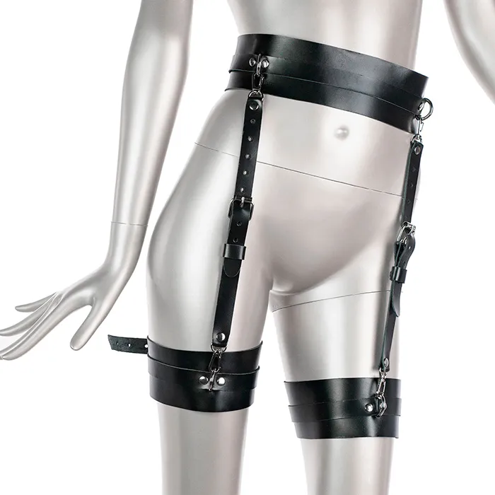 Портупея на пояс из натуральной кожи - это пояс и гартеры, соединённые ремешками и кольцами из нержавеющей стали. Кожа и металл символизируют силу, а нежное женское тело вступает с ними в контраст. Это рождает невыразимое влечение к обладательнице данного аксессуара.