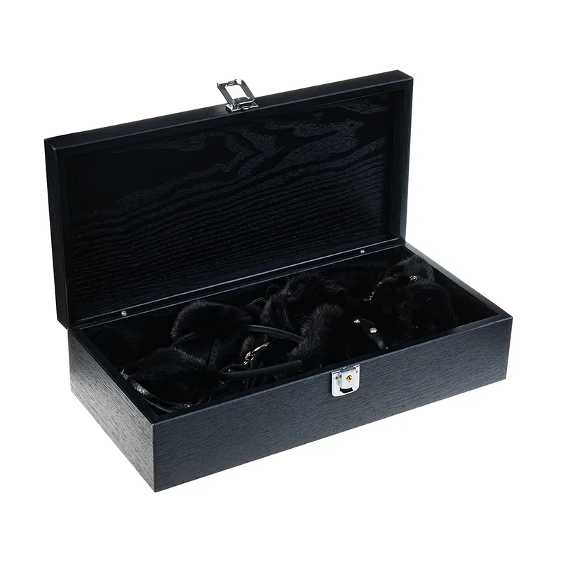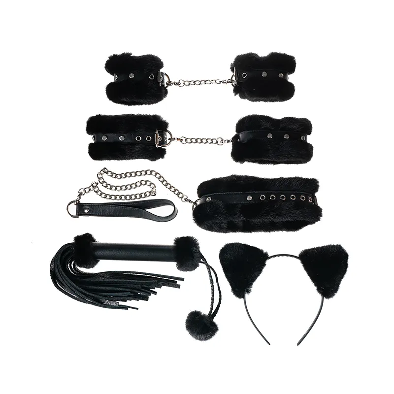 В комплект входят: плетка, игривый ободочек с ушками, ошейник, наручники и наножники. Всё выполнено из натуральной кожи чёрного цвета и натурального меха норки.