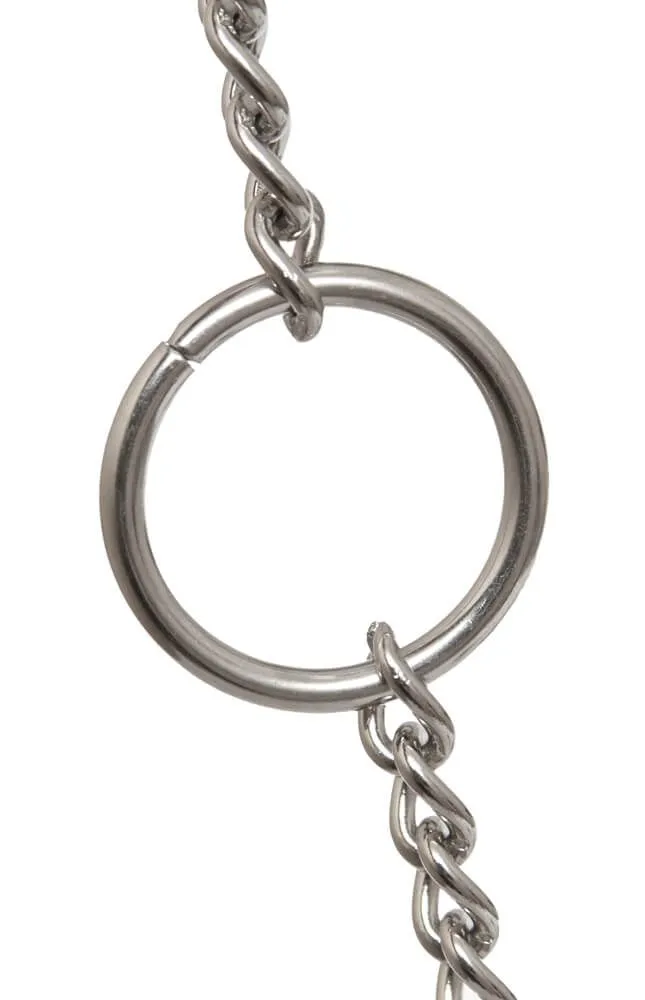 Цепь с центральным кольцом и двумя карабинами от компании "Подиум" может использоваться для соединения наручников и поножей, а также других девайсов БДСМ-тематики. Она выполнена из прочного металла, длина 15 см.
