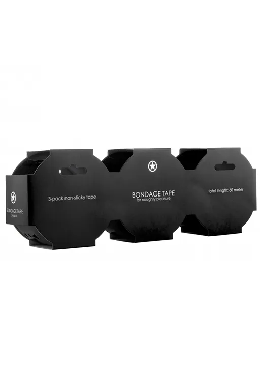 Набор из 3 скотч-лент для бондажа Bondage Tape – набор из трех прочных и надежных самоклеющихся скотчей или бондажных лент для связывания, общей длиной 60 метров (3 по 20). Преимущество этих лент в том, что они способны приклеиваться только к своей собственной поверхности, не доставляя неприятных ощущений коже, не вырывая волоски, не оставляя следов на мебели и игрушках.
