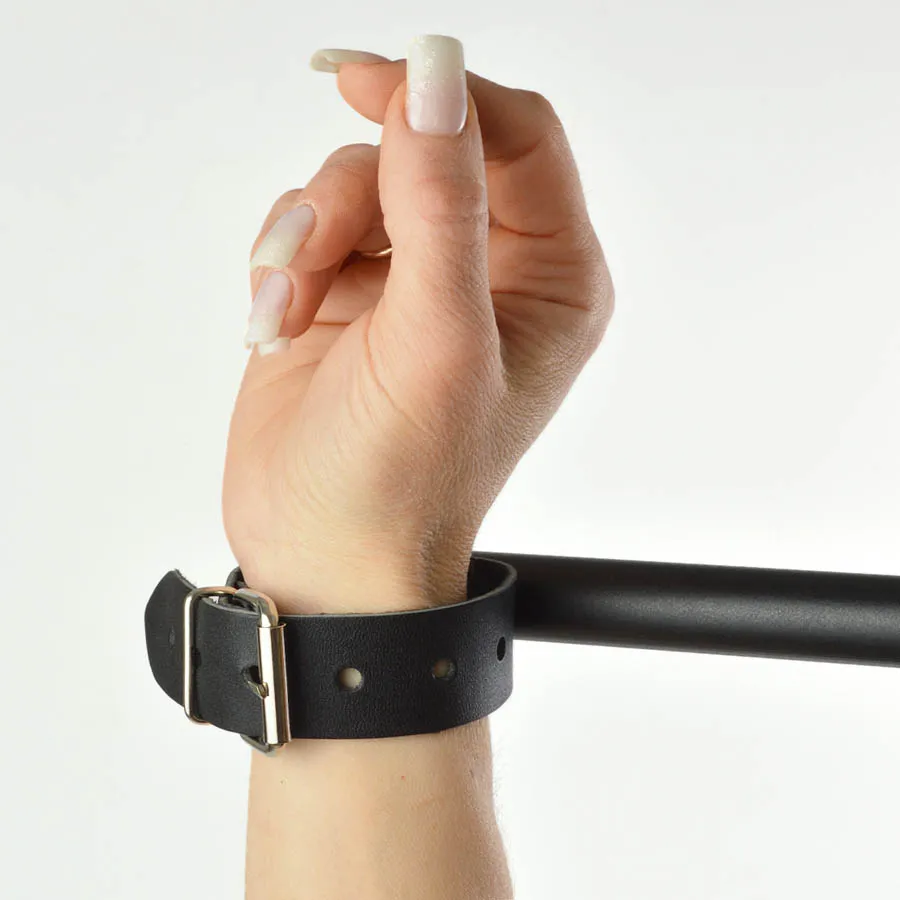 Распорка не заменимый аксессуар, который поможет ограничить подвижность и зафиксировать Вас или Вашего партнера в нужном положении для достижения максимального удовольствия. Девайс состоит из жесткой основы, которая покрыта натуральной кожей и украшена декоративной голографической вставкой. На основании располагаются 4 карабина для фиксации наручников и оков.  Никелированная фурнитура обеспечивает более долгий срок службы изделия и сохраняет декоративные свойства. Длина распорки 75 см