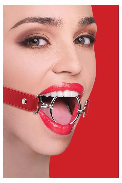 Кляп-кольцо (кляп-рамка) Ring Gag XL – приспособление для фиксации рта в открытом состоянии, в форме буквы «О». Гаг состоит из металлического кольца с хромированным покрытием и ремня для фиксации с регулировкой длины из качественной кожи черного цвета с элегантной строчкой, украшенного серебристыми металлическими заклёпками с никелевым покрытием.