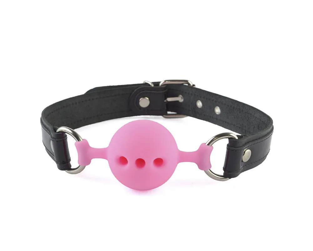 Силиконовый кляп-шар розовый с ремешками из натуральной кожи черного цвета. Вдоль ремешков проходит лаковая кожаная накладка черного цвета. Регулируется девайс при помощи металлической пряжки. Металлическая фурнитура имеет никелевое покрытие. Диаметр шара 44 мм. ..