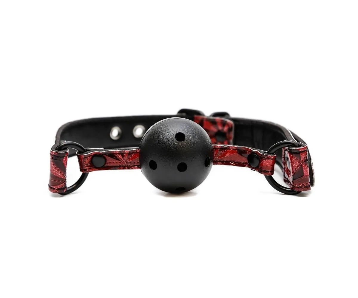 Aphrodisia Ball Gag - это пластиковый кляп черного цвета. Надевается Ball Gag с помощью винилового ремешка, который можно отрегулировать под нужный размер. Ремешок выполнен с узорчатой текстурой красного цвета. С внутренней стороны у аксессуара есть специальная подкладка из мягкого неопрена для комфортного использования.