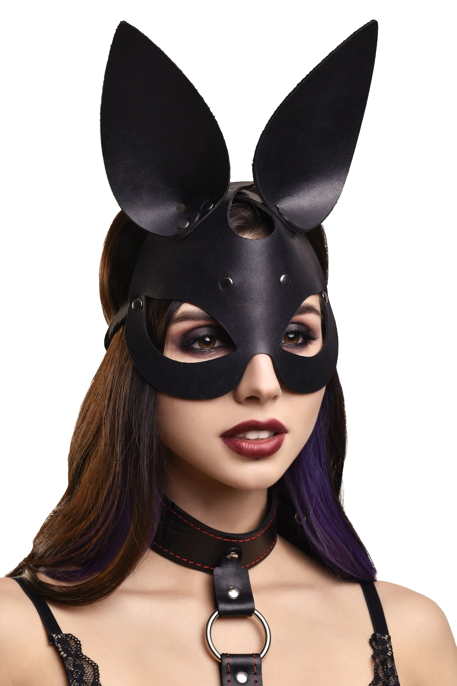 Маска Pecado BDSM, с ушками зайки, натуральная кожа, черный