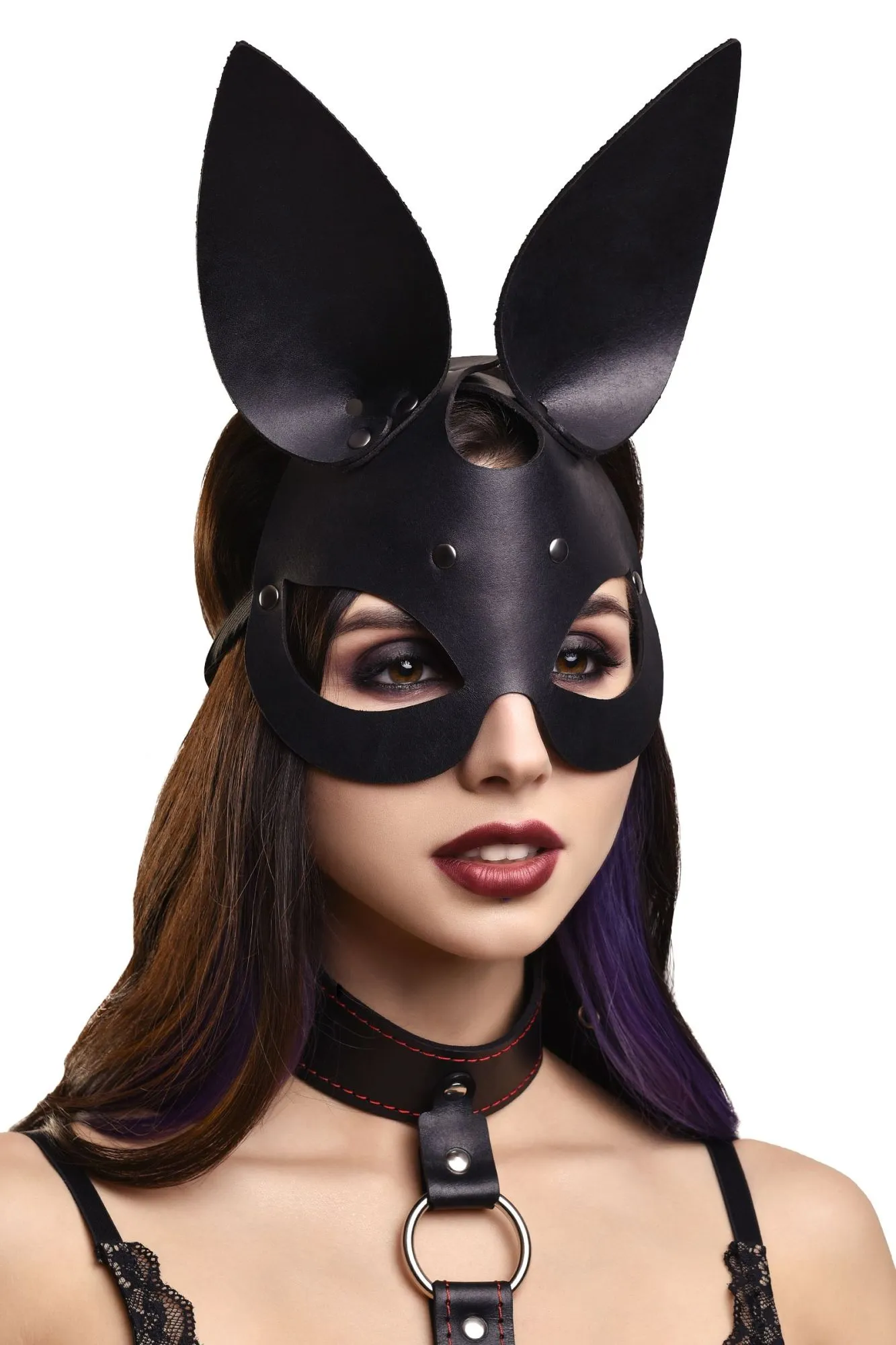 —Маска Pecado BDSM, с ушками зайки, натуральная кожа, черный