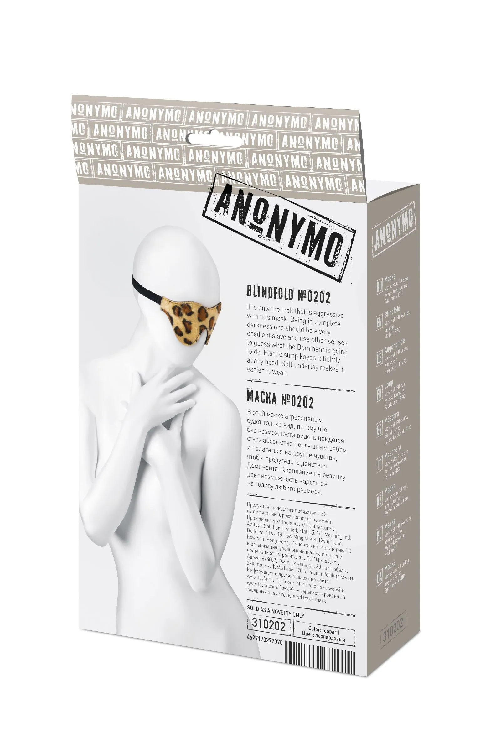 Незаменимый аксессуар для остроты ощущений – плотная маска, лишающая возможности видеть. Зато другие чувства обострены до предела. В этой плотной маске леопардового окраса от бренда Anonimo без возможности видеть придется стать абсолютно послушным рабом и полагаться на другие чувства, чтобы предугадать действия Доминанта. Оригинальный дизайн с удлиненными глазницами и плотный материал не пропускают свет, а мягкий подклад приятен для ношения, не натирает и не оставляет следов. Крепится маска с помощью резинки, это дает возможность надевать маску на голову любого размера. Леопардовый окрас маски демонстрирует агрессивный вид, все звериное нутро, страсть и свобода призывают действовать – доминировать или подчиняться. Материал: PU кожа, искусственный мех Цвет: леопардовый Общая длина: 26 см Рабочая длина: 20,5 см Ширина: 8 см