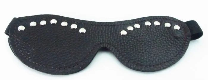 Коричневая маска из кожи, декорированная заклепками. Крепится к голове при помощи удобной резинки. Длина маски - 19,5 см., ширина - 7 см.