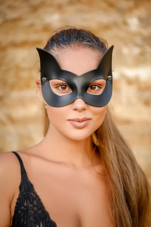 Красивая и удобная маска для создания яркого образа! Выполнена из натуральной кожи черного цвета , декорирована серебристой фурнитурой. Приятная и удобная к лицу, фиксируется под нужный размер с помощью резинки. Поможет создать игривый, загадочный образ и эффектно подчеркнет глаза!