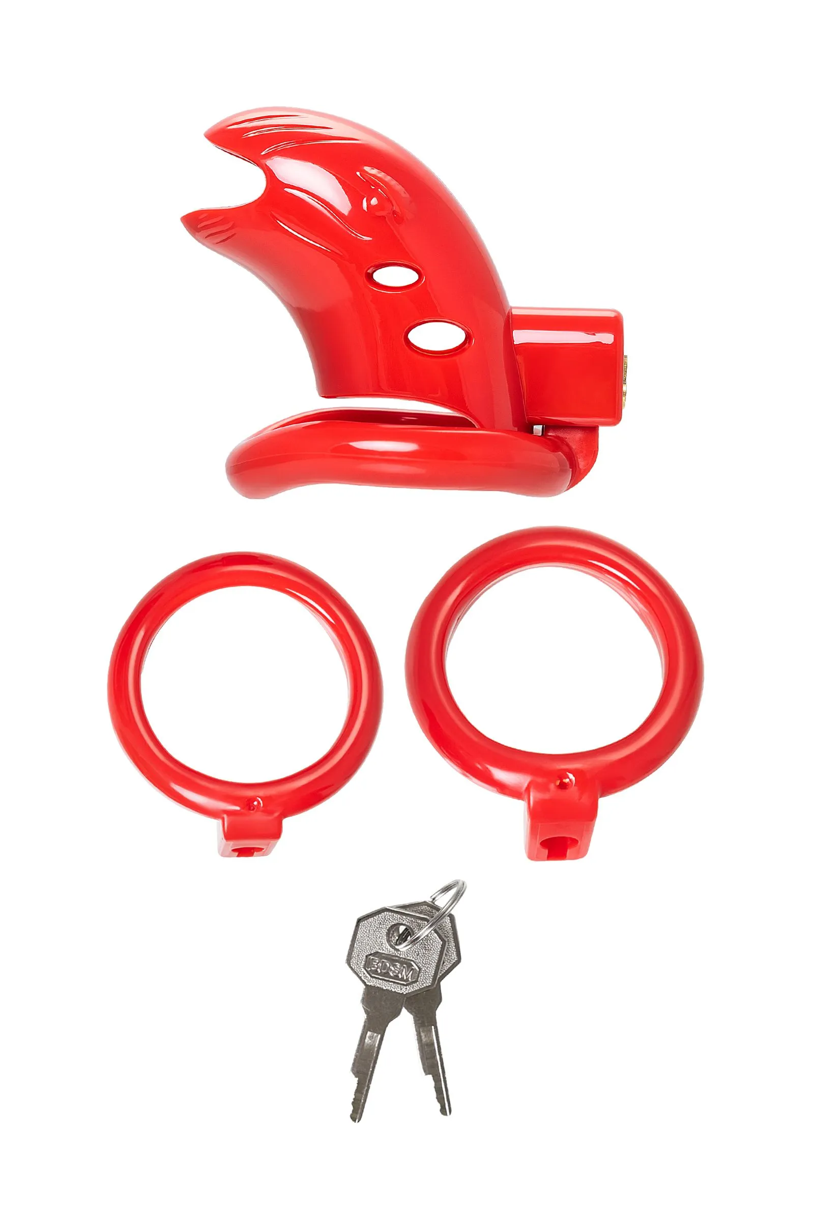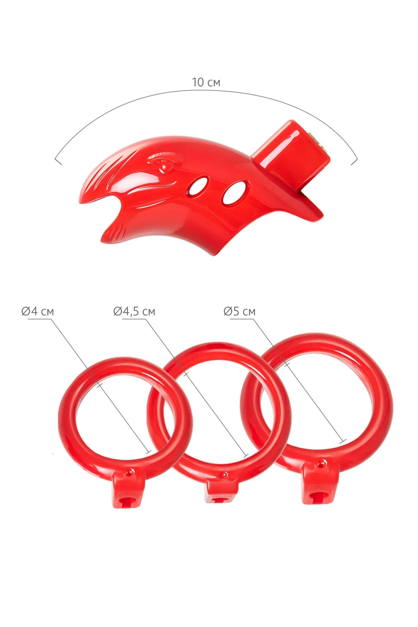 Идеальный инструмент для контроля и доминирования — пояс верности для него. Жесткая изоляция пениса гарантирована в этом устройстве. Никакой несанкционированной эрекции, пока половой член заперт на замок в этой пластиковой клетке, а ключ спрятан в потайном месте. Отверстие на конце делает возможным мочеиспускание, поэтому пояс подходит для длительного ношения. В комплекте три пластиковых кольца разного диаметра, подходящих для разных размеров пенисов и вариантов ношения. С этим девайсом вы всегда будете уверены, что сексуальная жизнь партнера подчиняется только вашим капризам и желаниям. Материал: ABS Цвет: красный