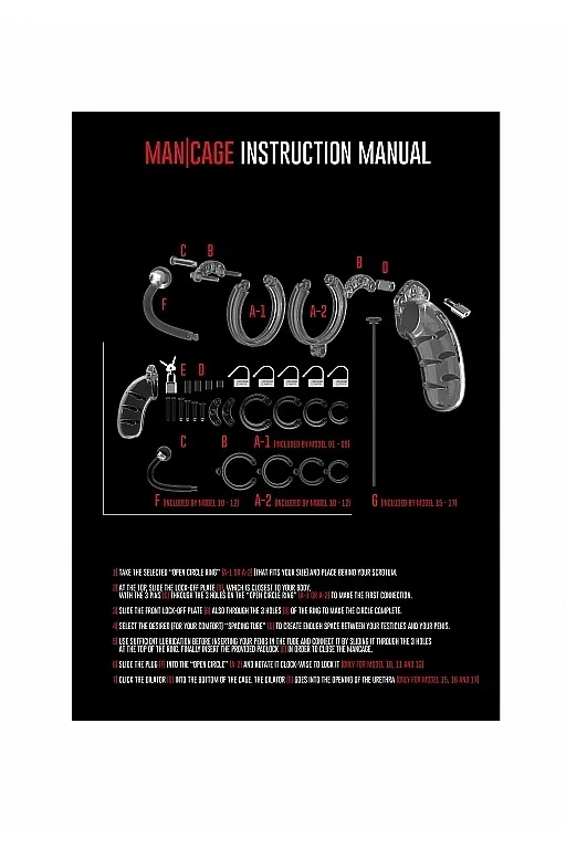 Благодаря легкому, прочному и гипоаллергенному материалу пояс идеально подходит для долговременного ношения. Изделие состоит из нескольких разборных частей: клетки, кольца и штифтов, которые идеально сочетаются друг с другом. В комплекте к поясу идет 4 кольца разных диаметров для разных размеров и предпочтений. Просто выберете подходящий размер кольца, соедините его тремя штифтами, оденьте на средний штифт специальную втулку и соедините с клеткой. На центральном штифте есть специальное отверстие для замка. Выберете один из замков и зафиксируйте пояс. Фиксация тонкой гибкой лентой высокой прочности гарантирует, что металлоискатели на пояс не среагируют.