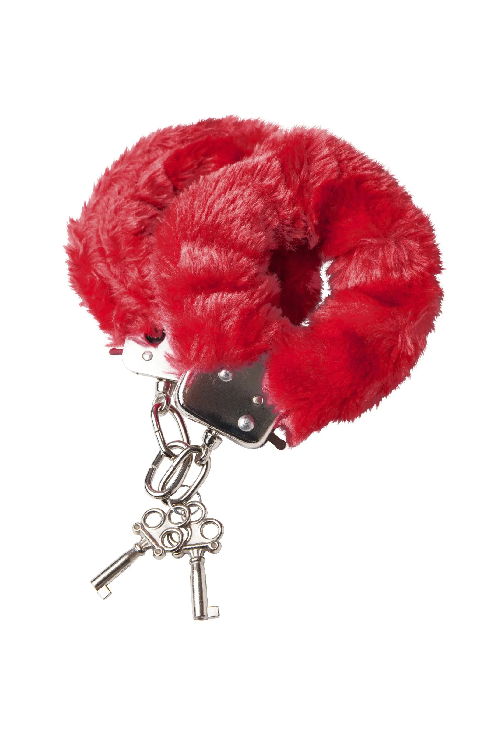 Наручники с металлическим основанием, декорированные красным искусственным мехом. С 2 ключами в комплекте. Регулируемый механизм позволяет сковывать как женские, так и мужские руки. На случай утери ключей или необходимости быстрого освобождения, предусмотрен рычажок быстрого открытия.