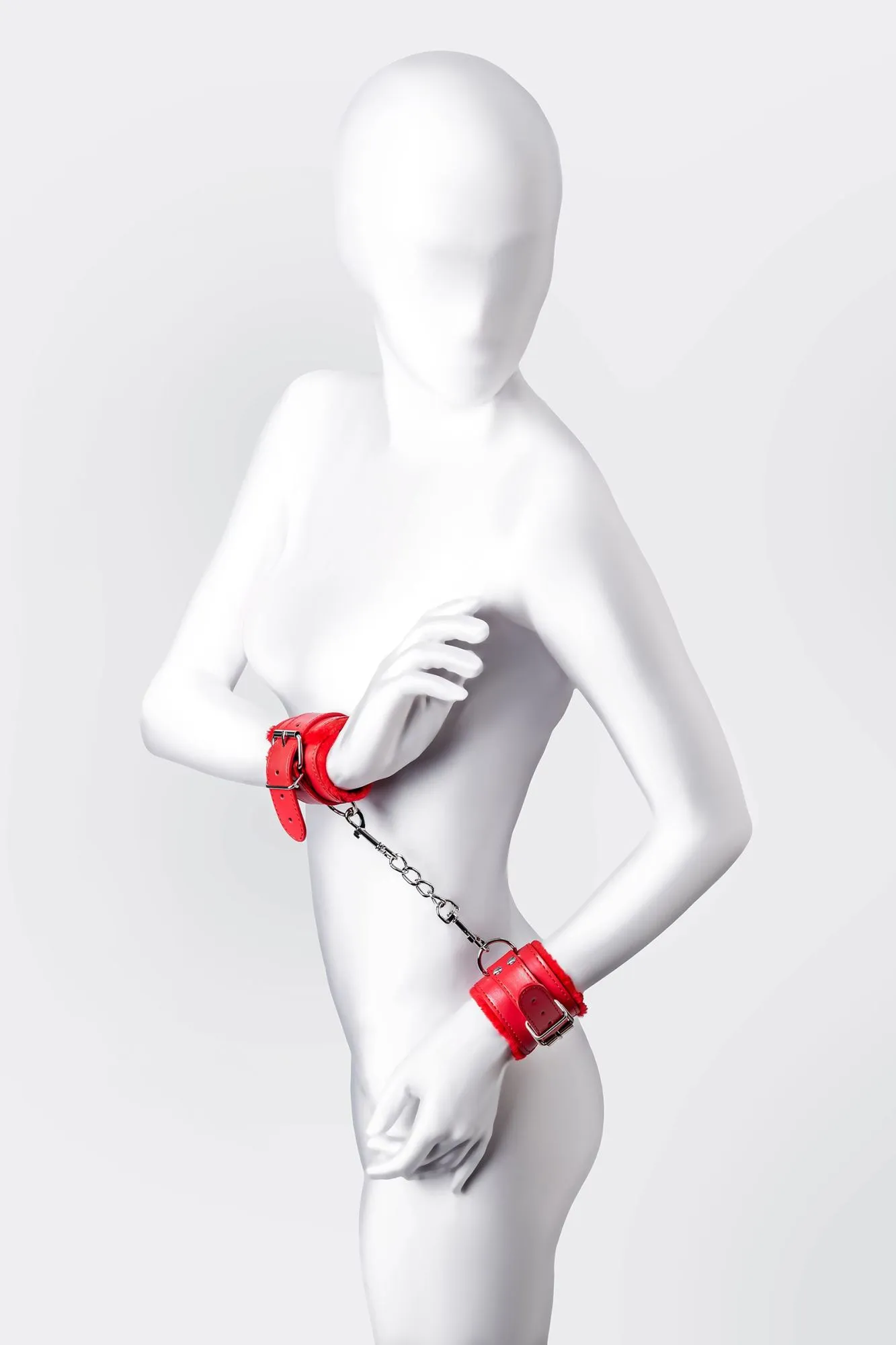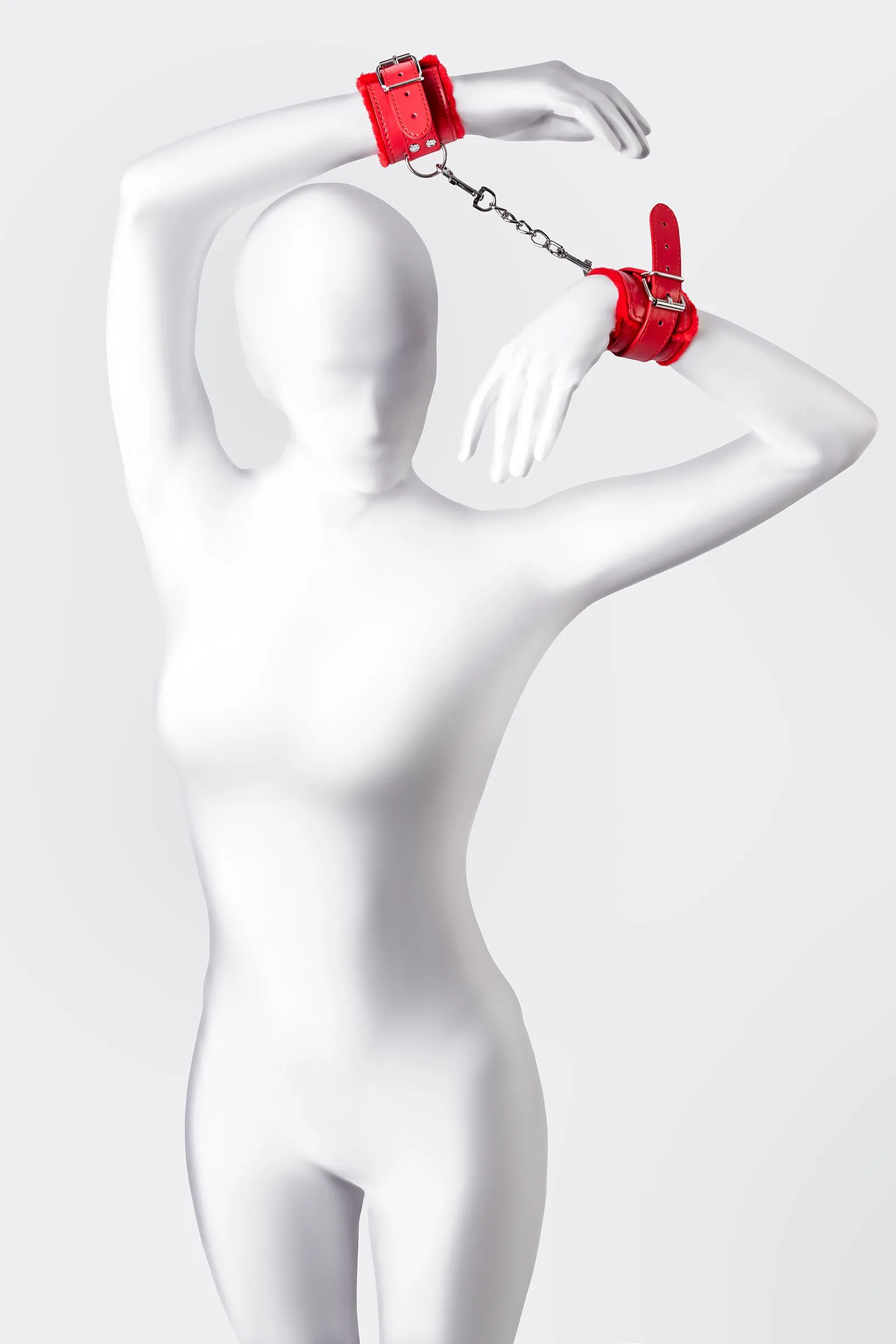 Наручники яркого красного цвета с металлической отделкой говорят вовсе не об агрессии. Эти произведения искусства говорят о страсти, которую можно проявить, но только с разрешения Доминанта. Подклад из искусственного меха делает ношение этих наручников более комфортным, но расслабиться в них не получится – цепочка на карабинах сильно ограничивает свободу действий. Длина наручников позволяет использовать их практически на любой размер рук. Отрегулировать размер и силу обхвата легко с помощью ремешка и металлической пряжки. Наручники – классический предмет для игры в подчинение, обязательный для начинающих и опытных поклонников БДСМ. Дополните комплект аксессуарами – ошейником, кляпом, оковами и продемонстрируйте что значит грубое обращение и полный контроль над свободой. Материал: PU кожа, металл Цвет: красный Длина: 19,5 см Ширина: 5,5 см Длина сцепки: 15,5 см