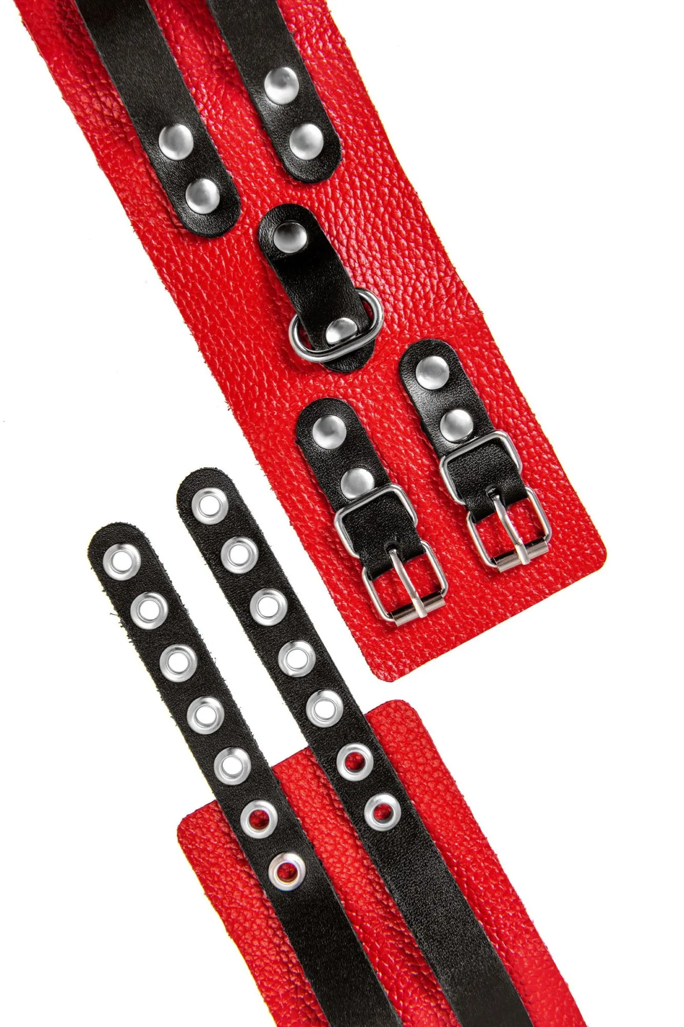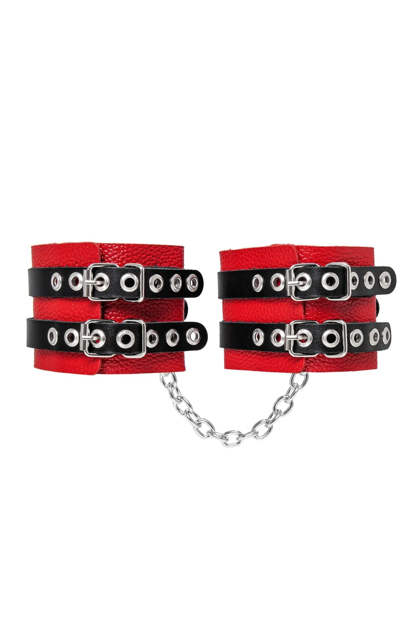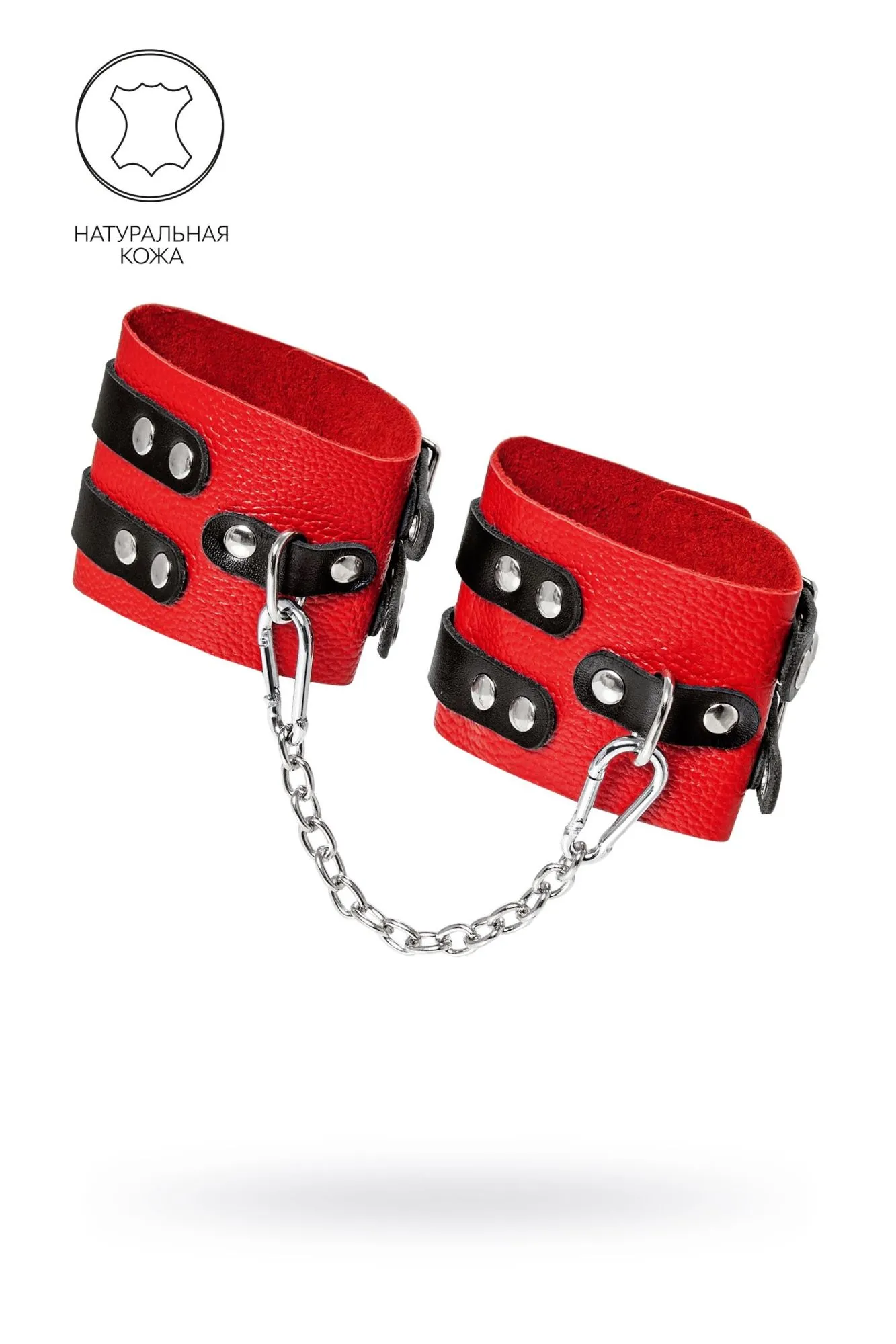 Оковы Pecado BDSM, мягкие, с двумя ремешками с люверсами, натуральная кожа, красно-чёрные