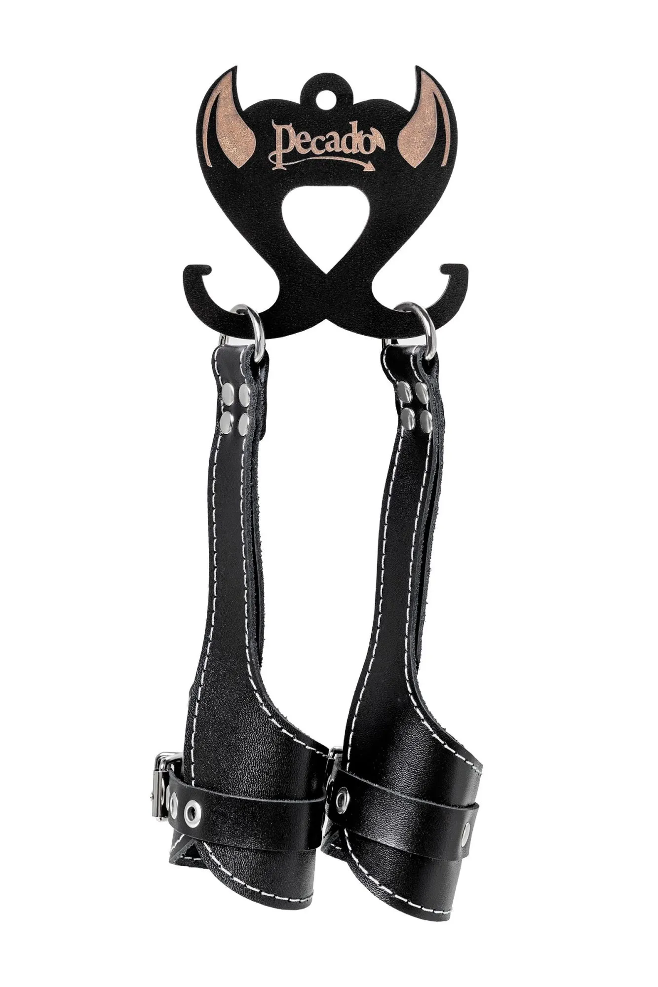 —Подвес Pecado BDSM, «мягкий» с белой строчкой, натуральная кожа, чёрный