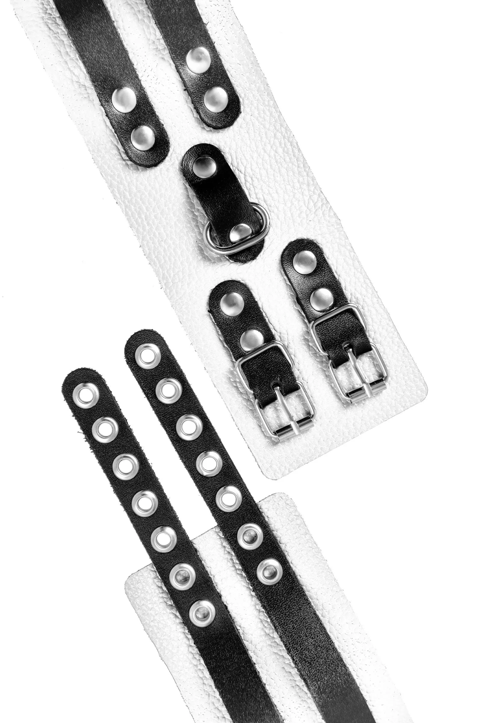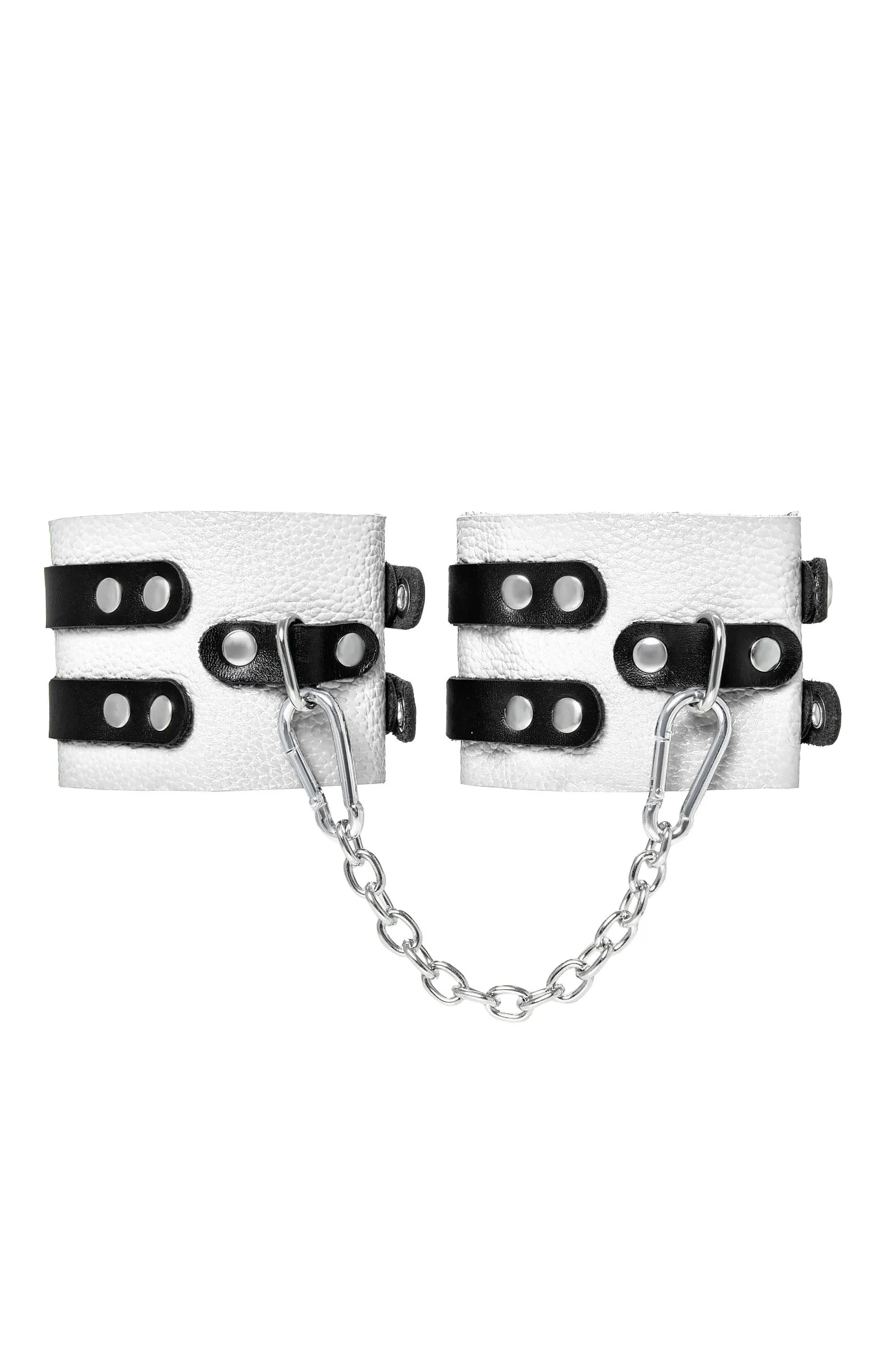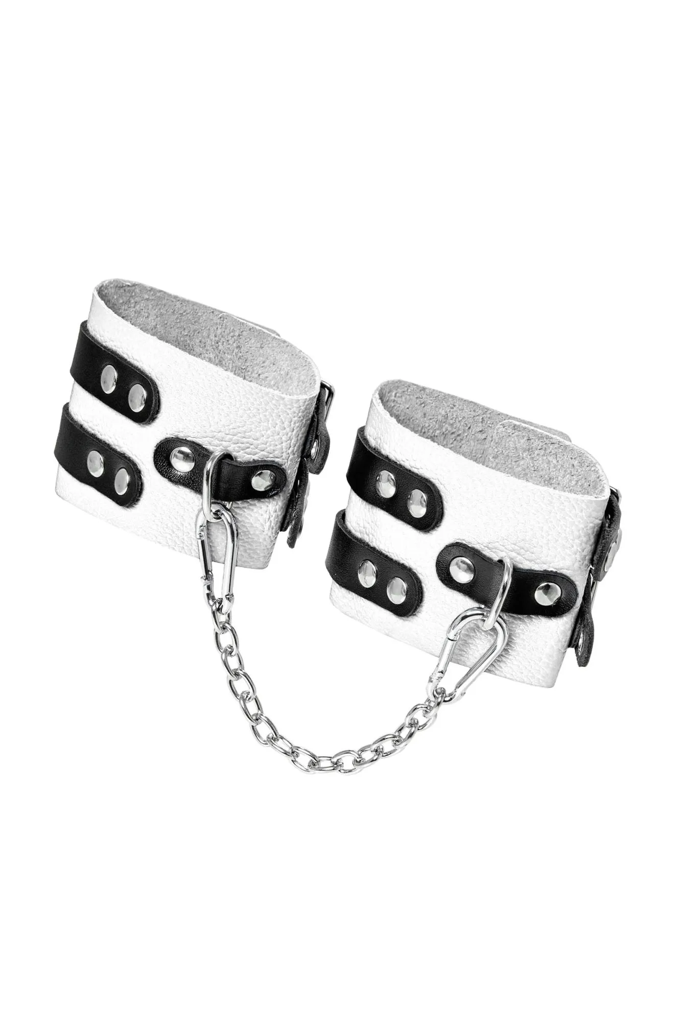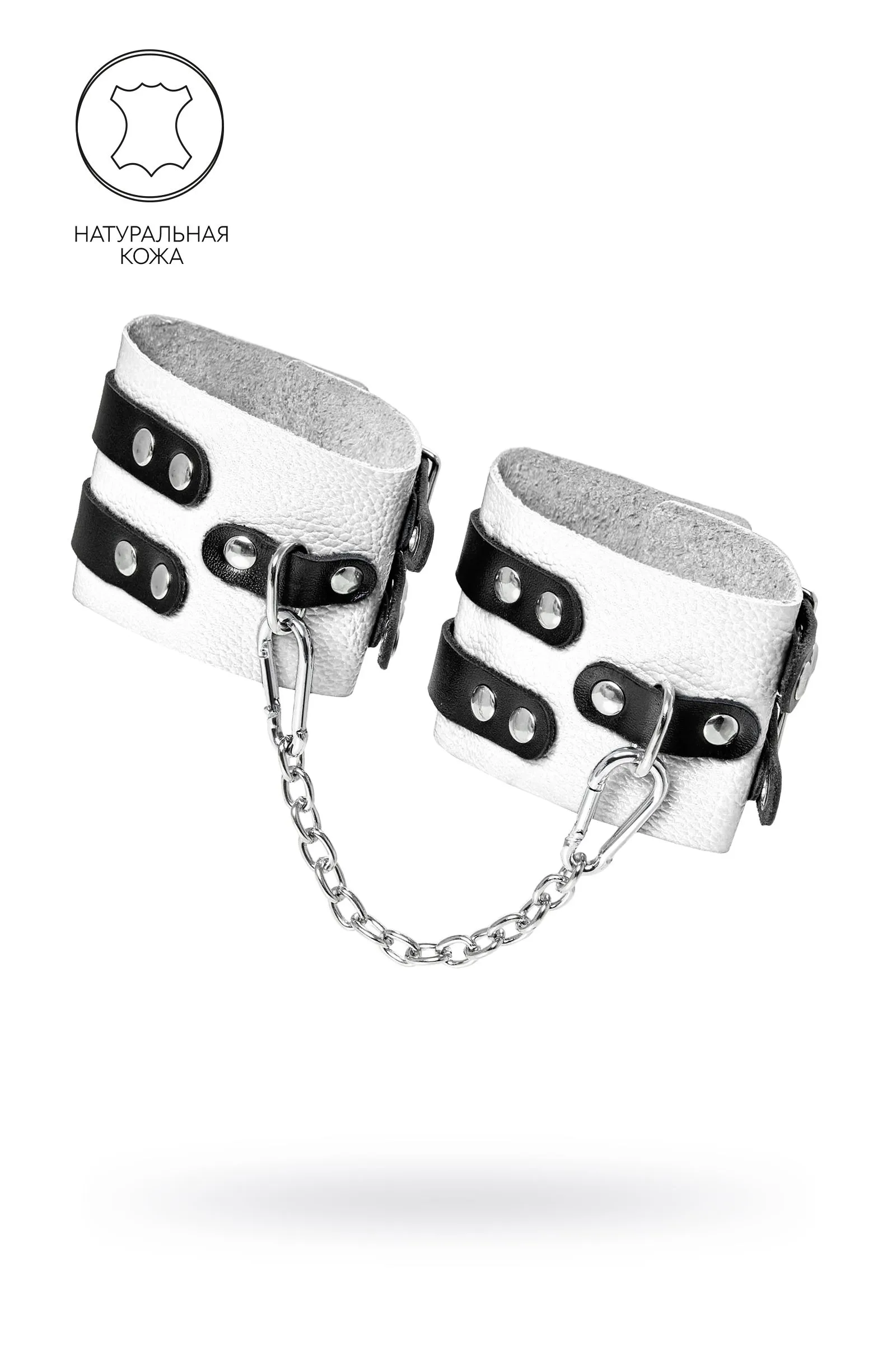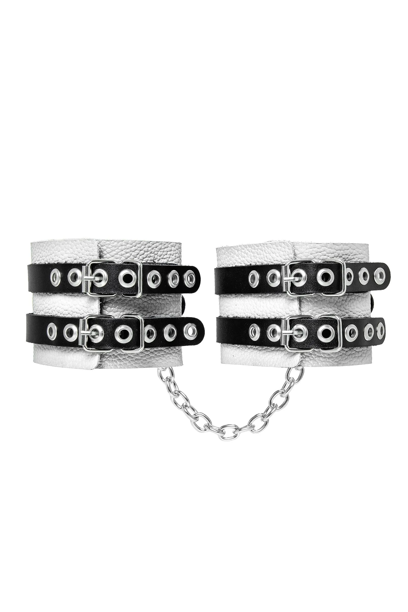Оковы Pecado BDSM, мягкие, с двумя ремешками, с люверсами, натуральная кожа, бело-чёрные