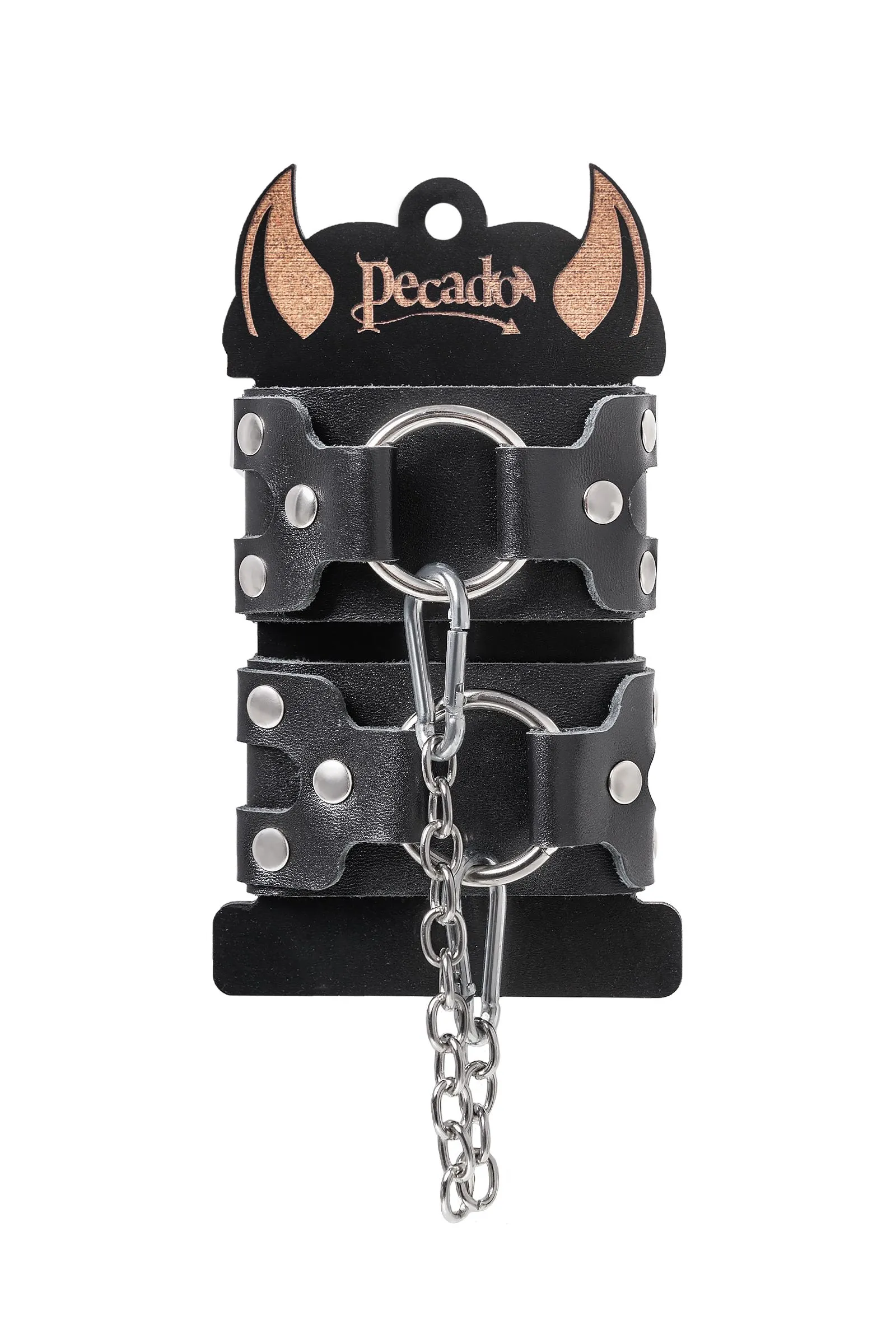 —Наручники-браслеты Pecado BDSM, с двумя ремешками, натуральная кожа, чёрные