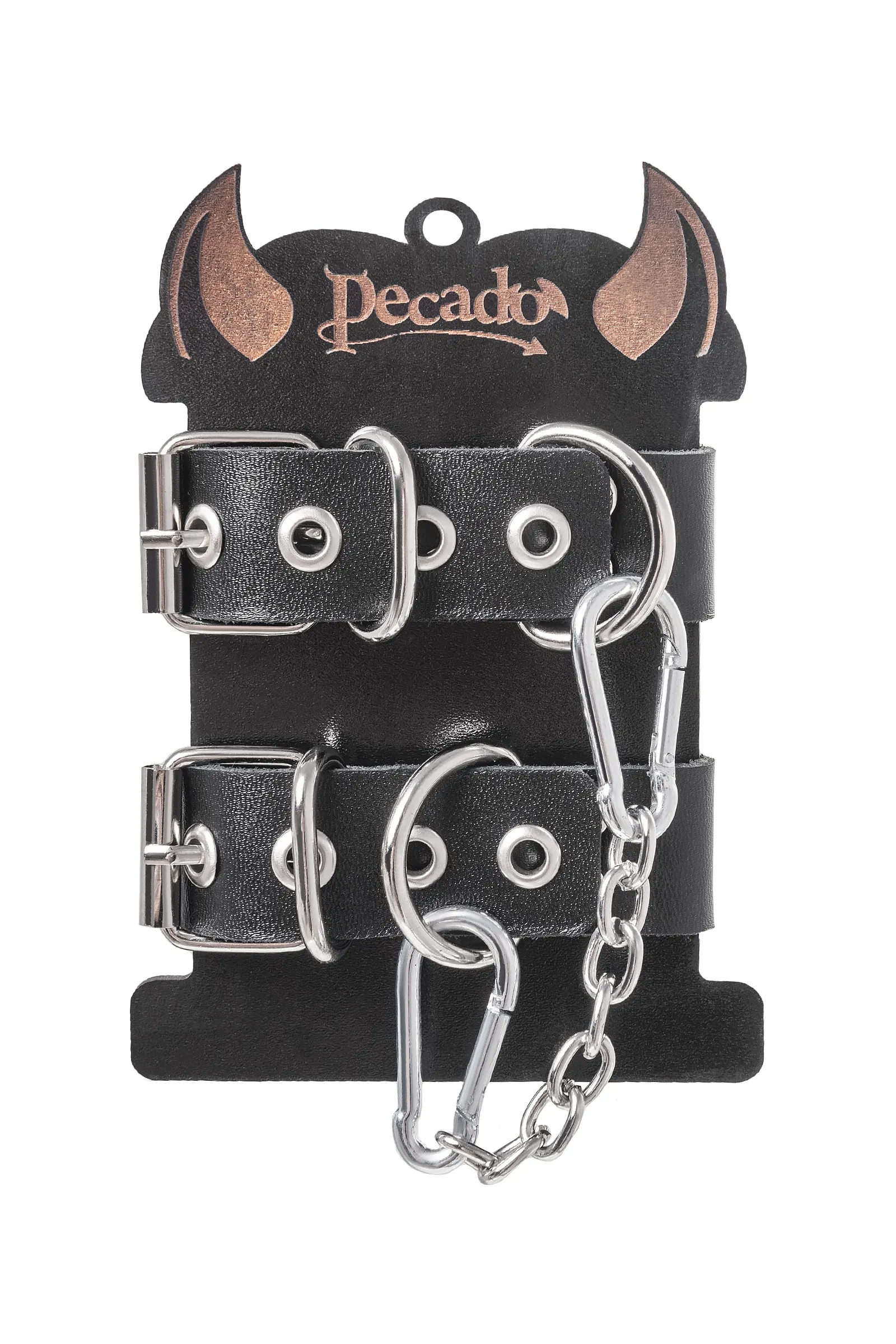 —Наручники-браслеты Pecado BDSM, из одного ремешка с люверсами, натуральная кожа, чёрные