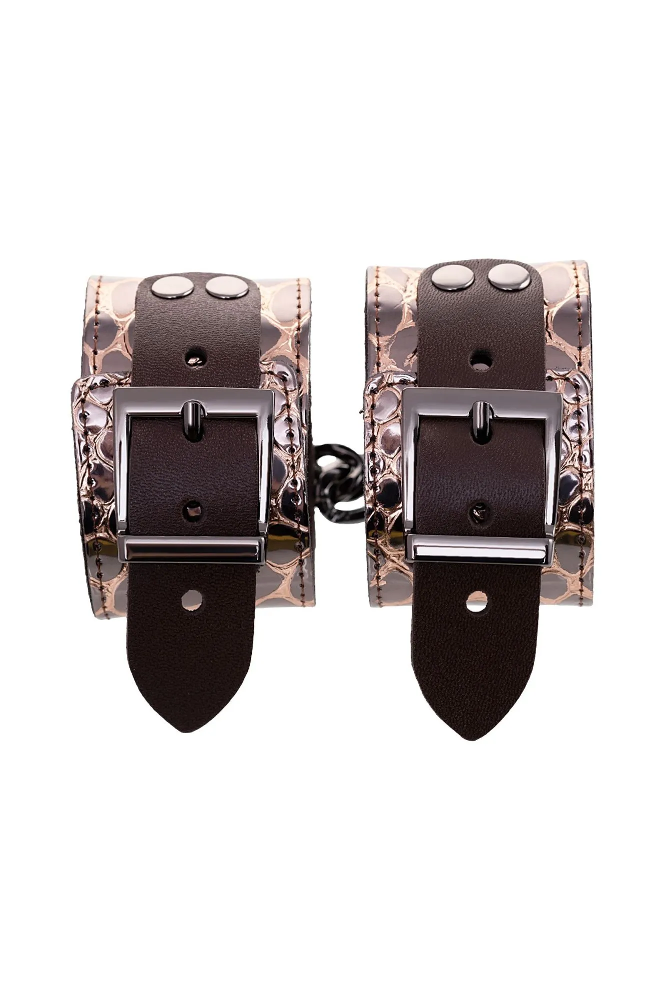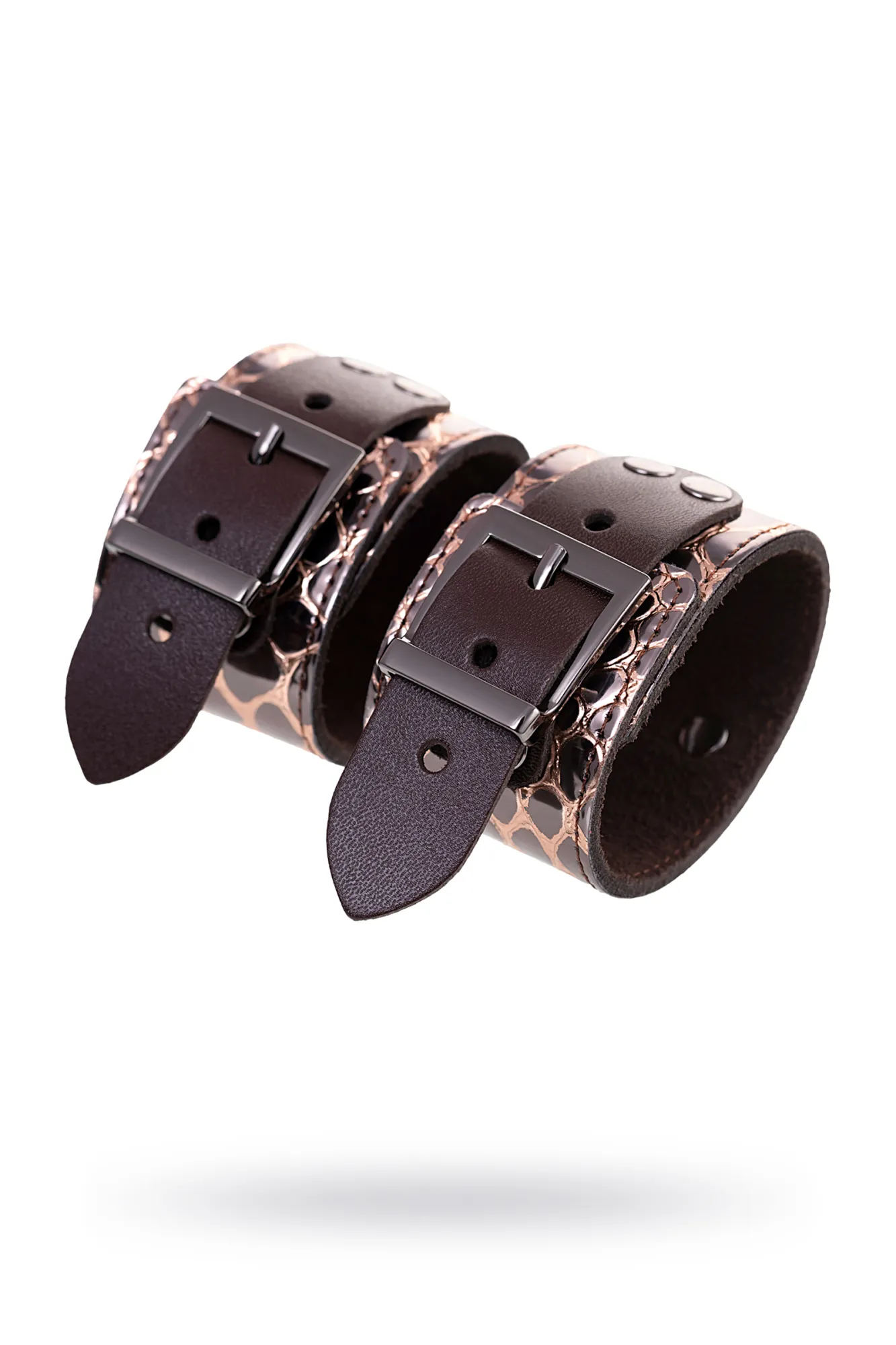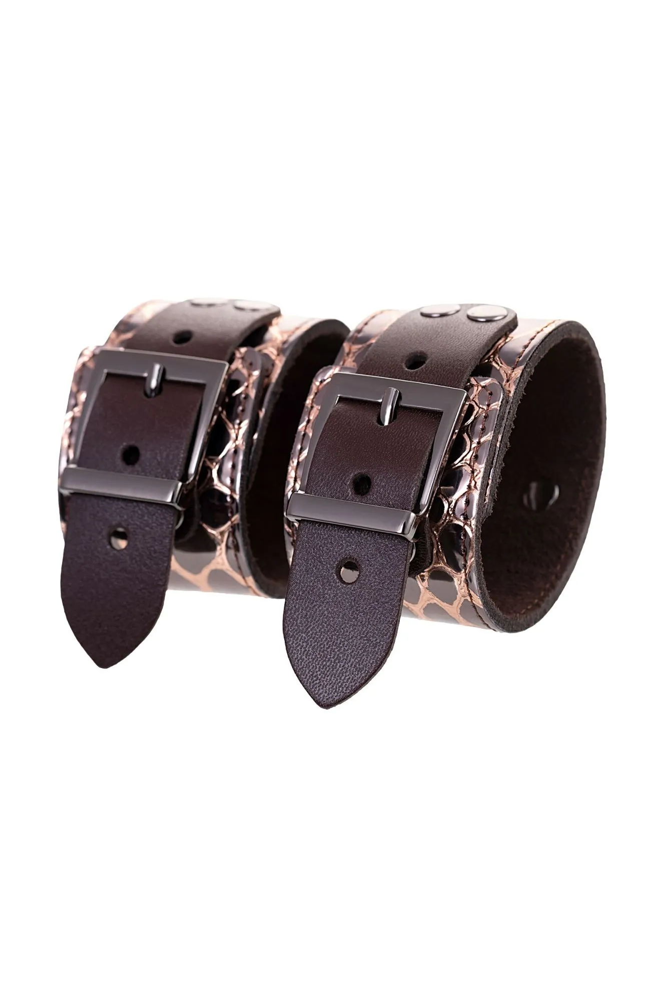 Наручники Штучки-дрючки, натуральная кожа, коричневые, 27,5 см