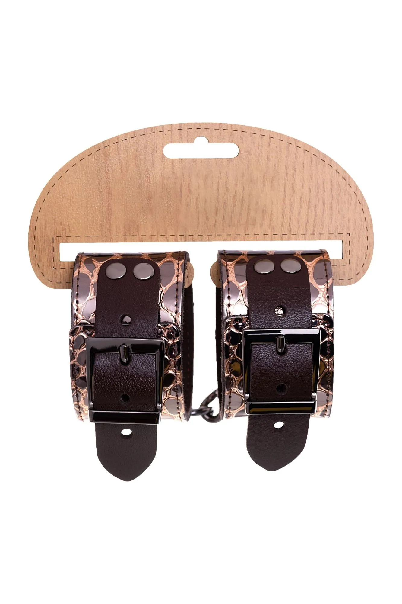 —Наручники Штучки-дрючки, натуральная кожа, коричневые, 27,5 см