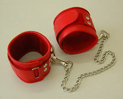 Оковы кожаные красные на липучках, соединенные цепочкой длиной 35см 3073-2