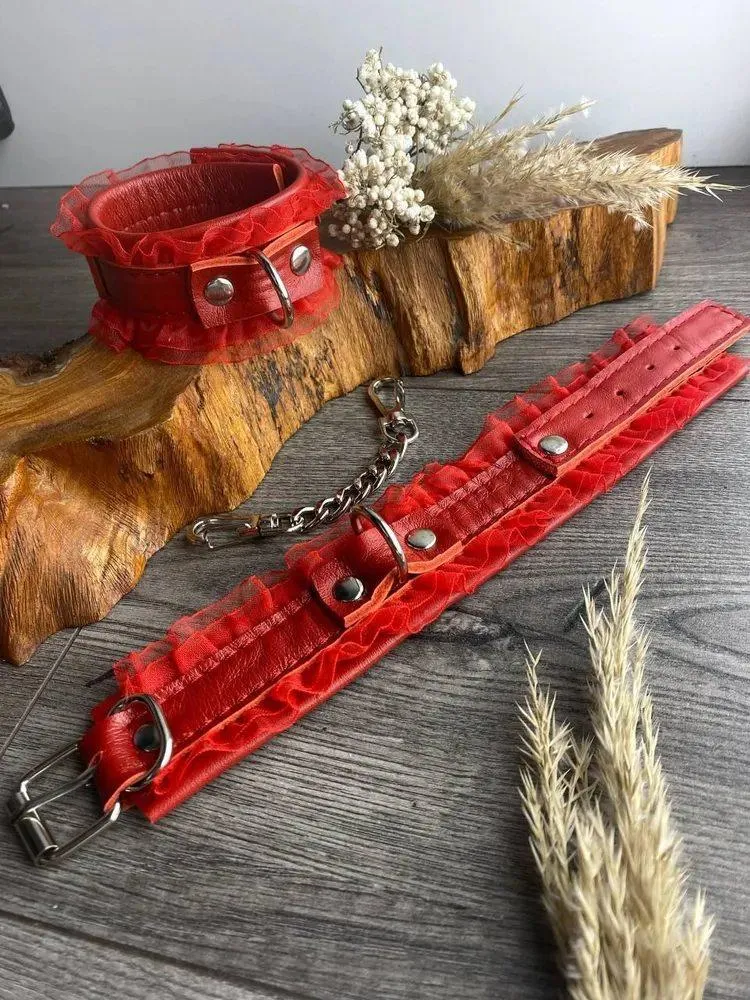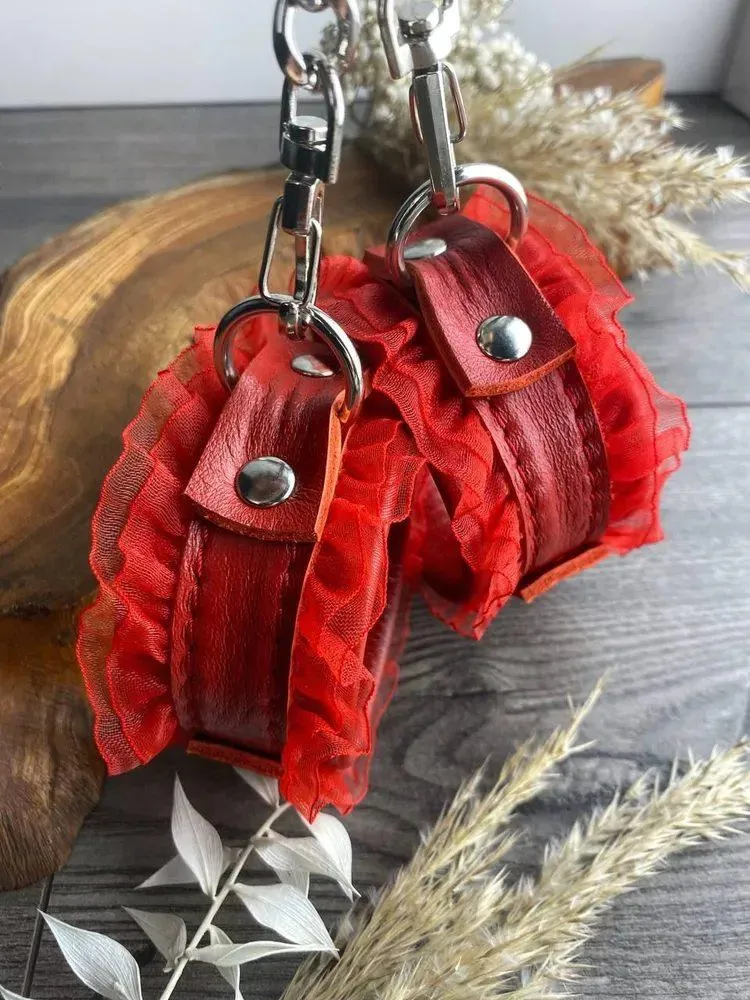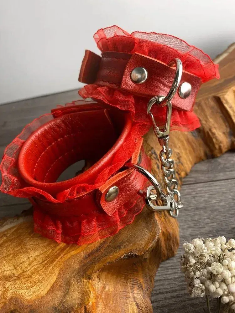 —Наручники красная кожа красные рюши