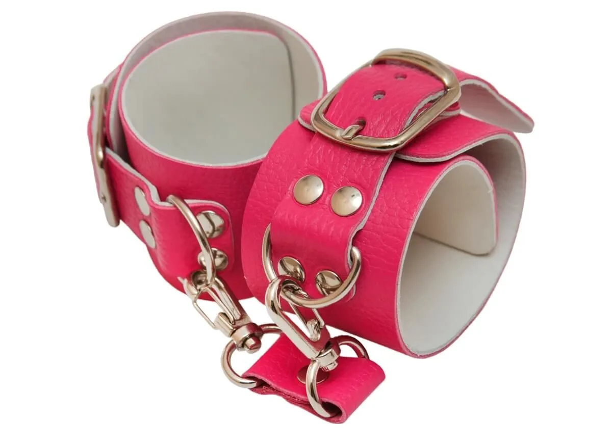 Наручники декоративные кожаные Lovegun 5 см, розовые