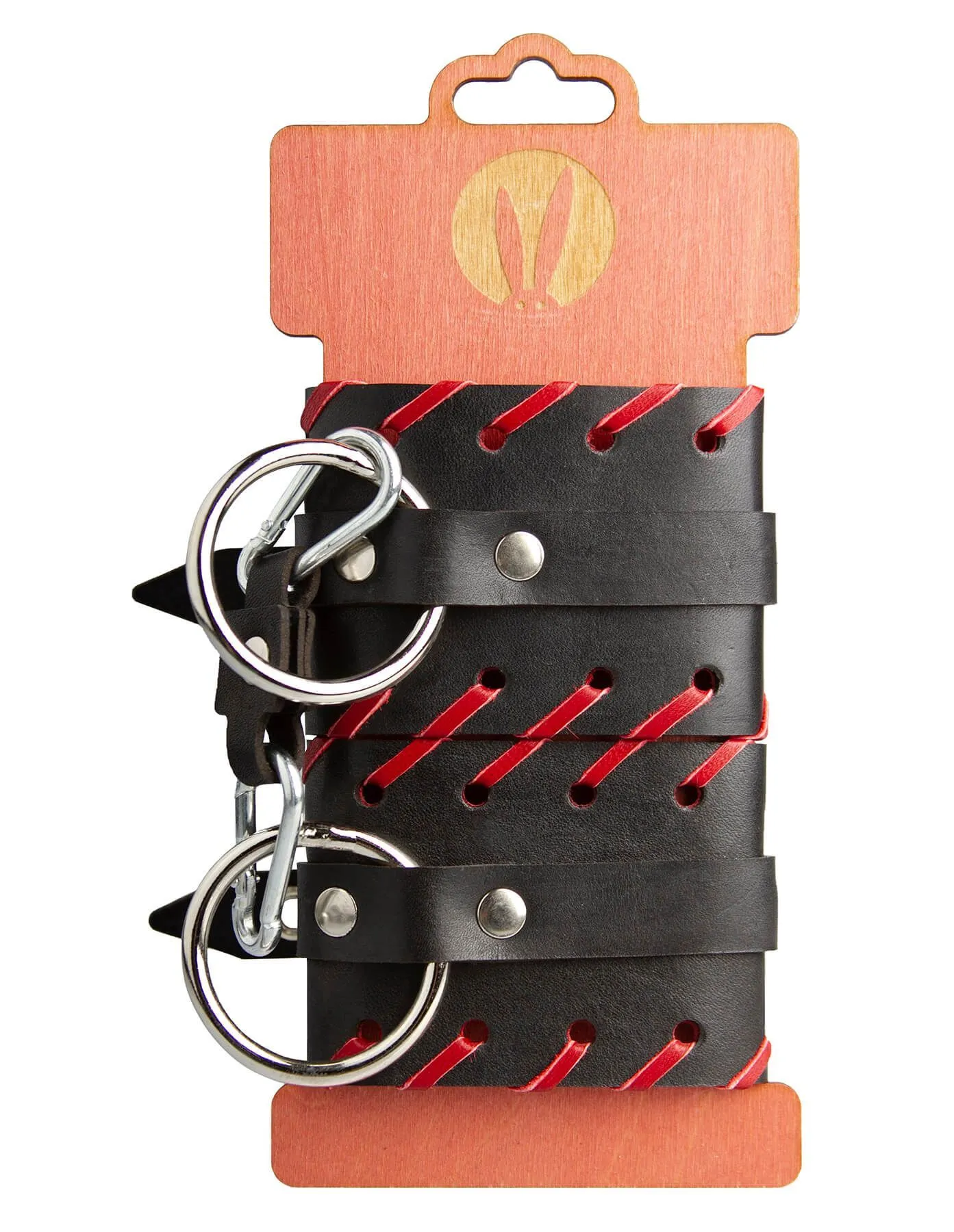 —Наручники декоративные кожаные PinkRabbit с красной окантовкой, черные