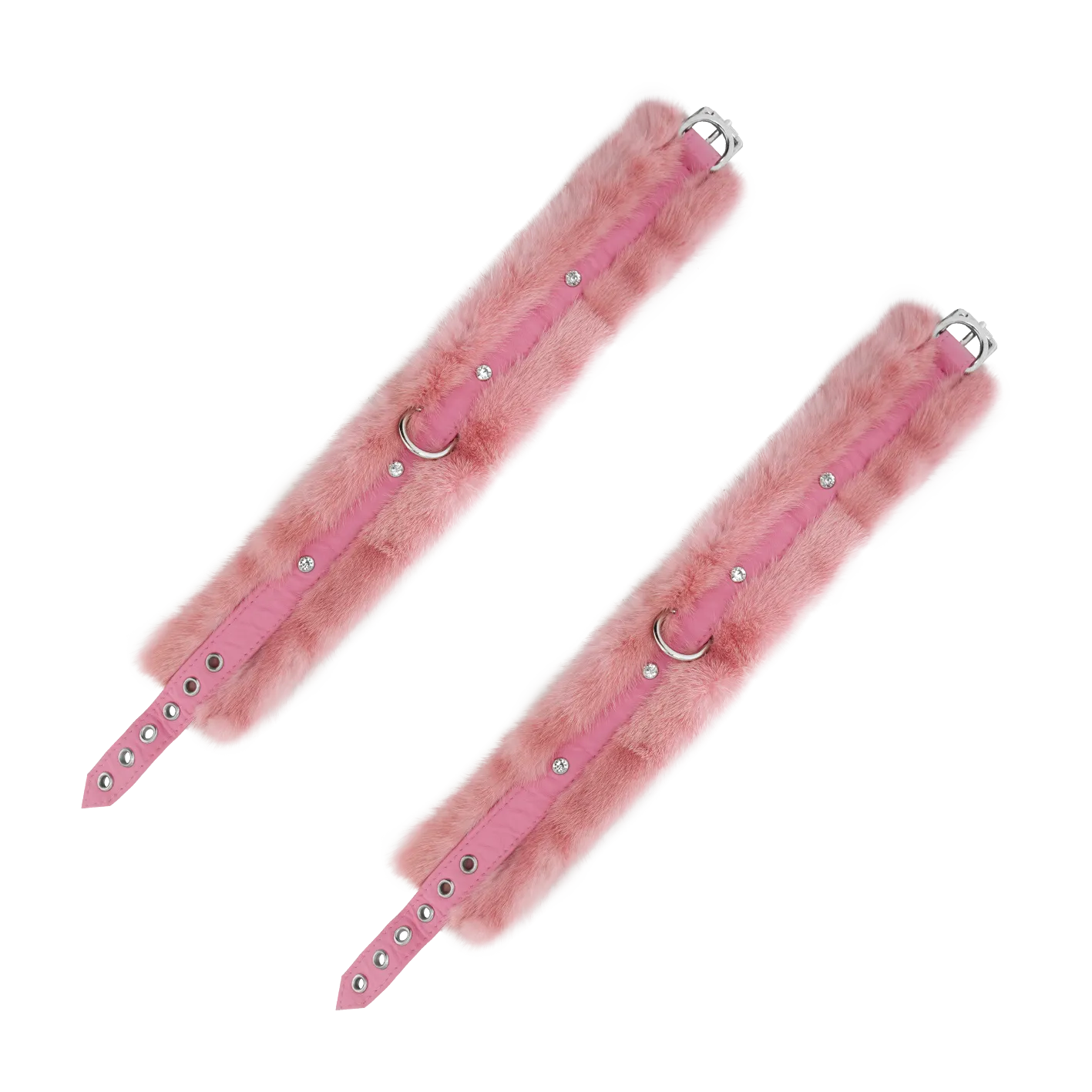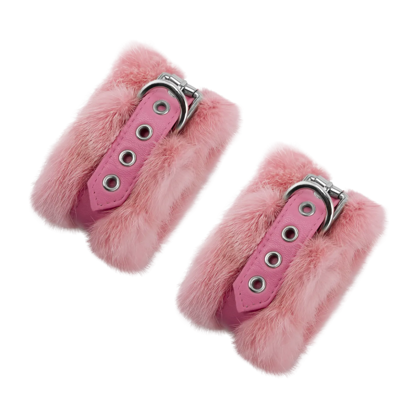 Набор наручники и ошейник из норки, розовые