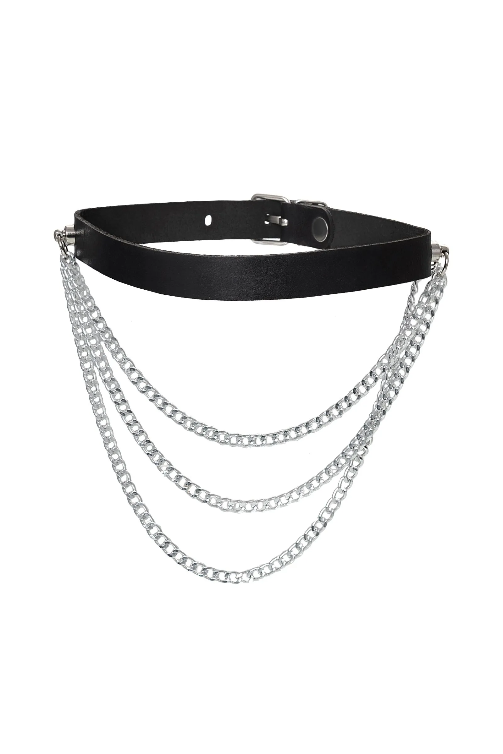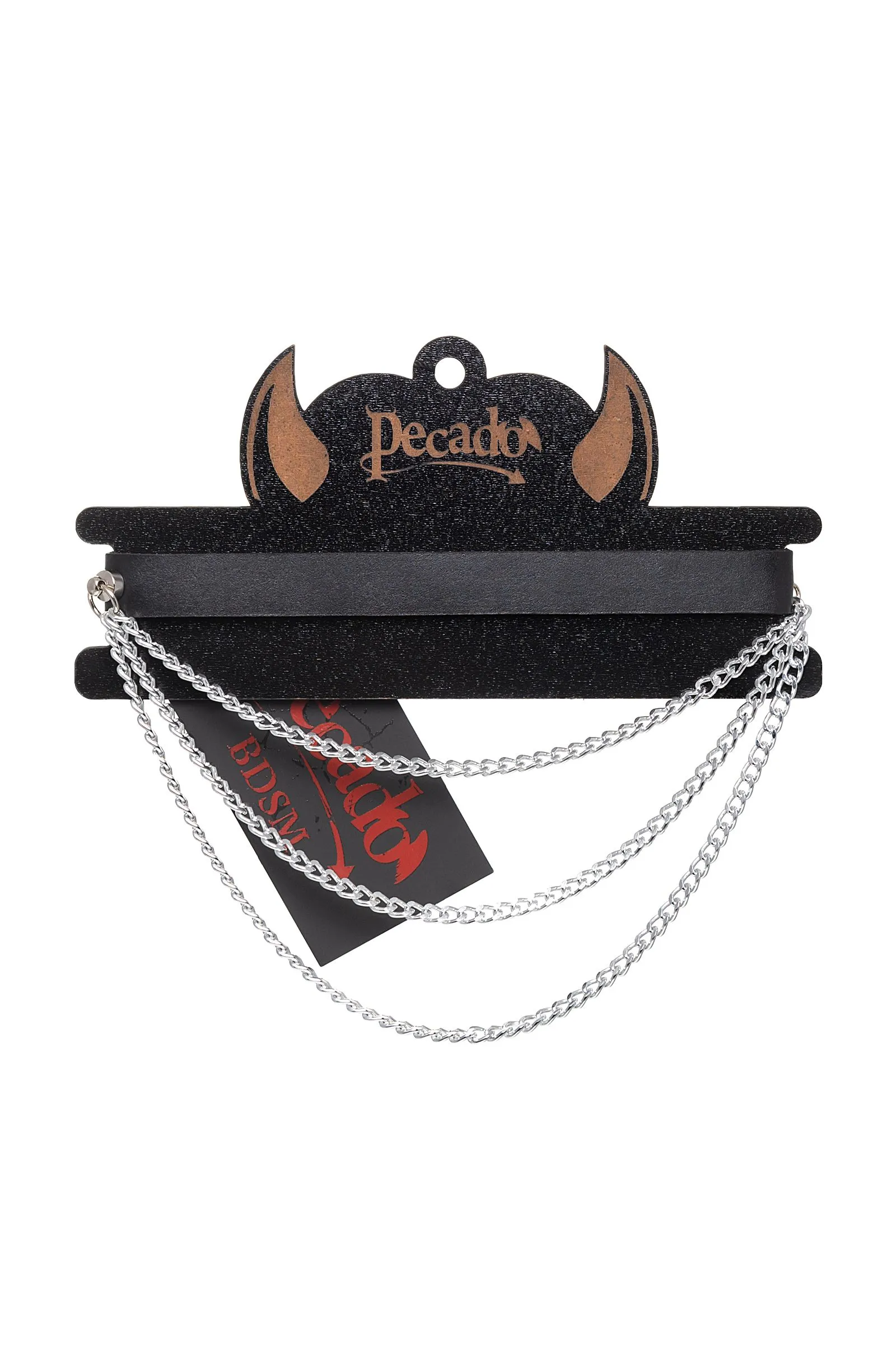 Кожаный чокер с цепочками от Pecado сводит с ума одним своим роскошным видом. Черный, тонкий, износостойкий - его приятно ощущать на шее. Полностью ручная отделка БДСМ-атрибута дарит роскошный внешний вид. Размер кожаного воротника комфортно регулируется удобной стальной пряжкой. Атрибут декорирован короткой цепочкой. Вся металлическая фурнитура отлично гармонирует с изделием и изготовлена из качественных материалов. Удобно одевается, надежно застегивается и не спадает. Попробуйте, если Вы любите дерзкие игры для взрослых! ▪️ 100% натуральная кожа. ▪️ Ручная работа. ▪️ Износостойкий, тактильно приятный материал ▪️ Надежная высококачественная фурнитура. ▪️ Универсальный размер.