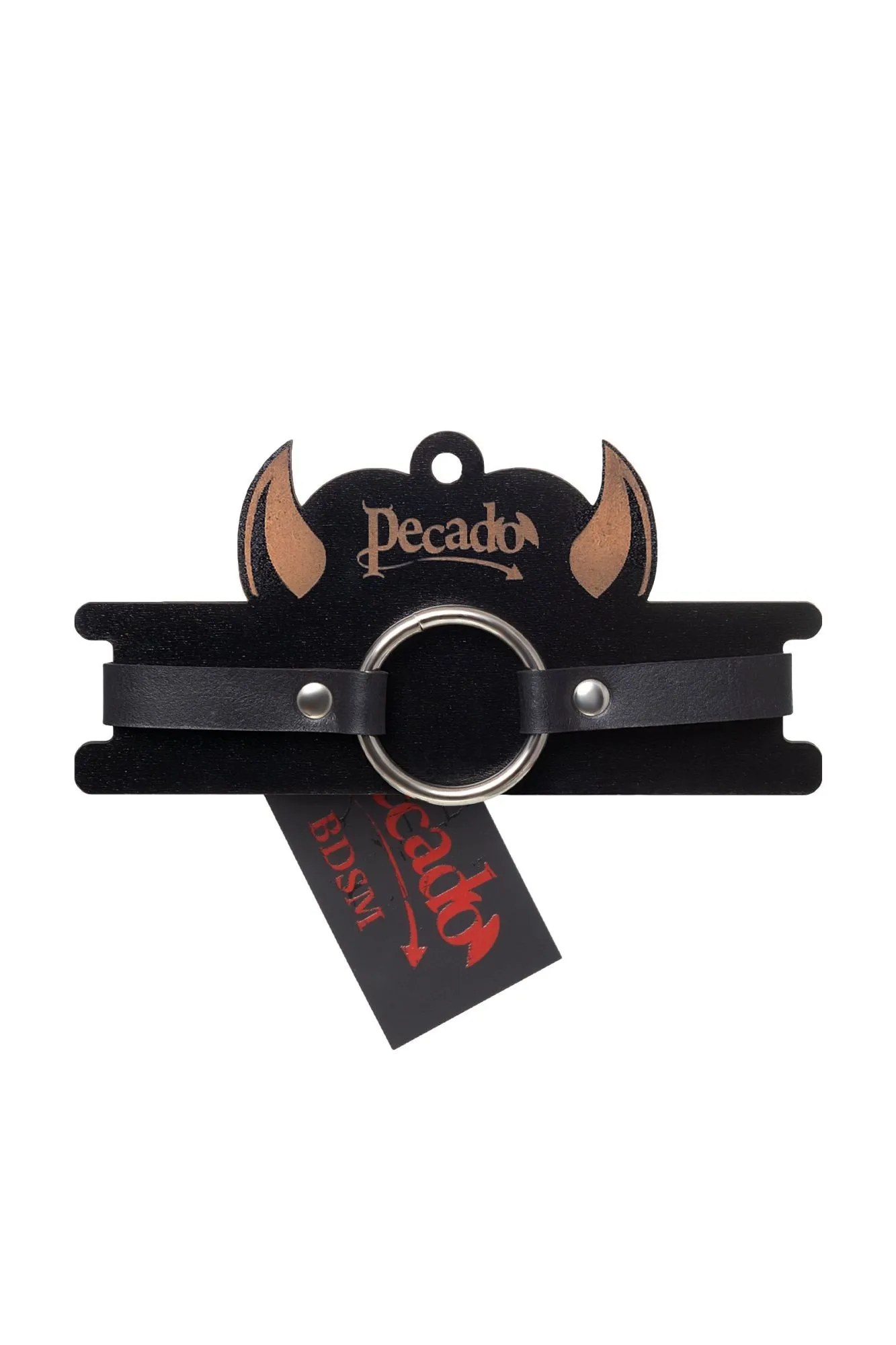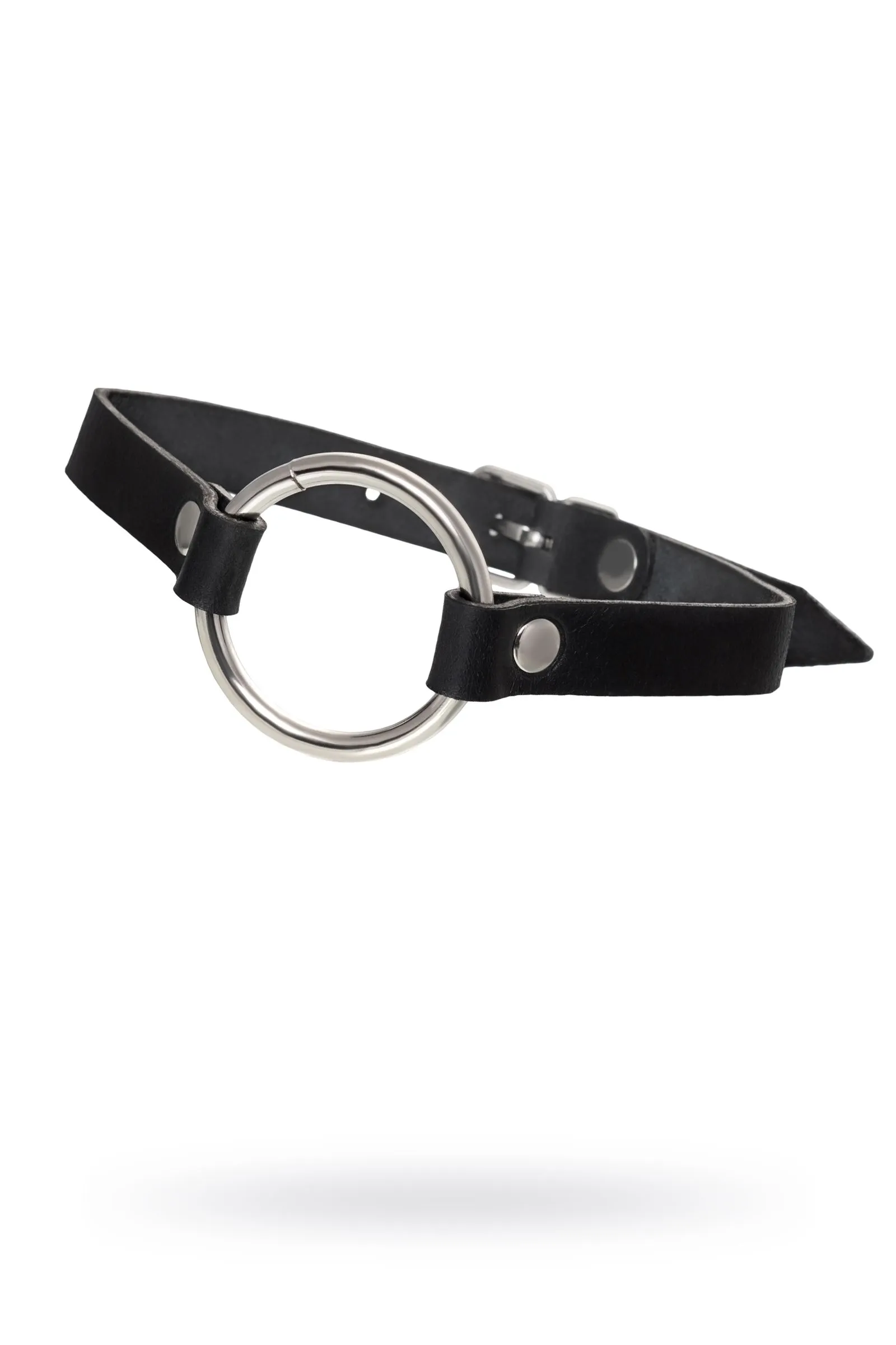 —Чокер Pecado BDSM, с круглым кольцом, модель 1, натуральная кожа, черный