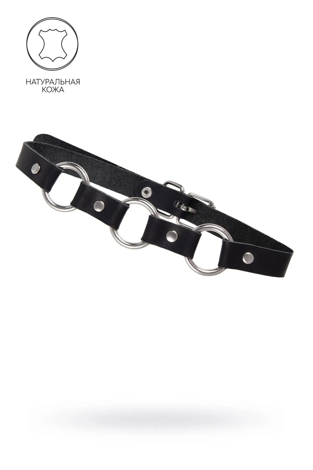 Чокер-ошейник Pecado BDSM, с кольцами в виде цепочки, натуральная кожа, чёрный