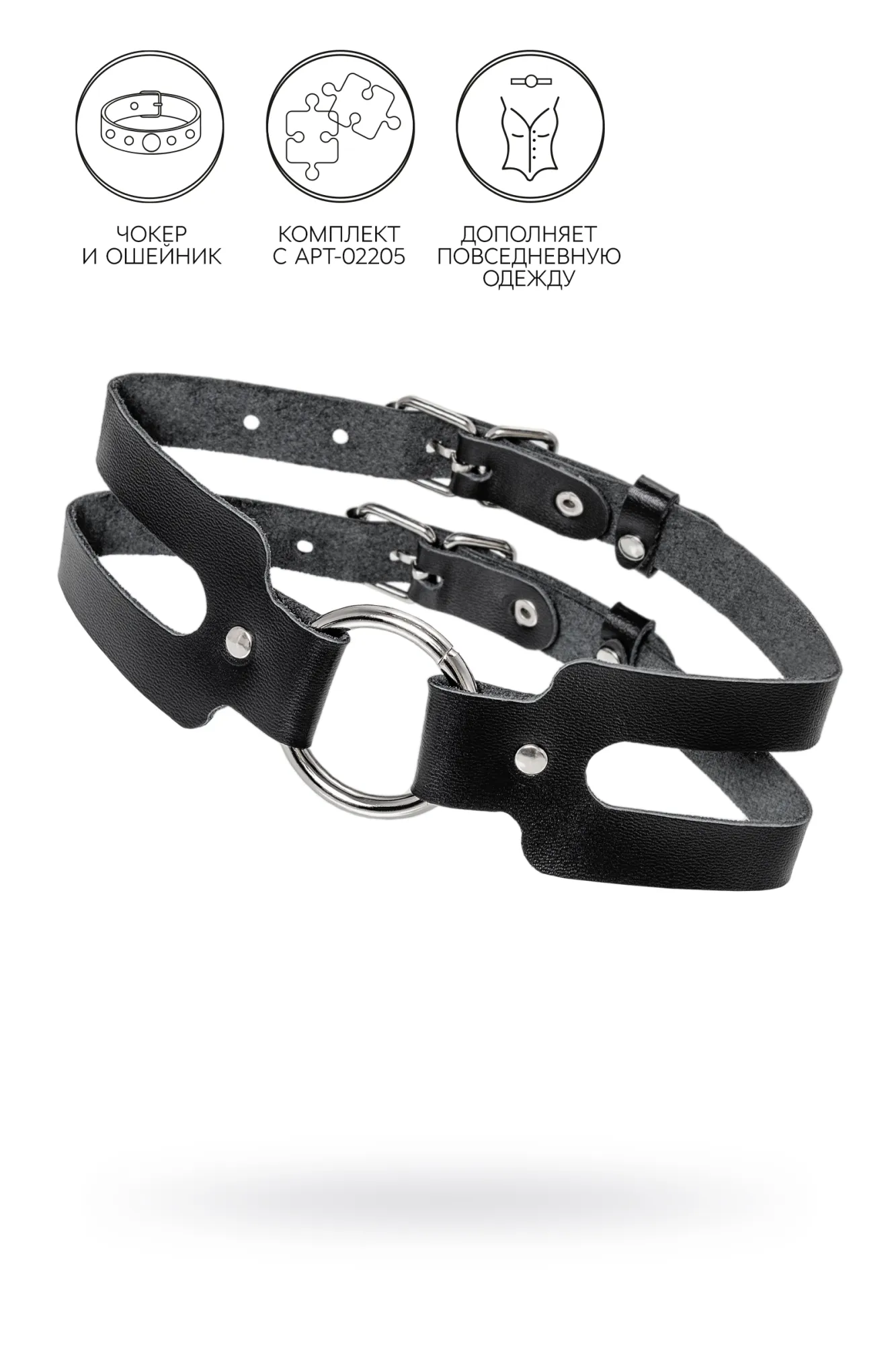 —Чокер-ошейник Pecado BDSM, из двух ремешков, натуральная кожа, чёрный