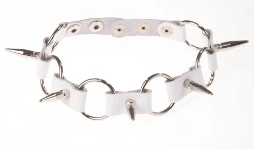 Ошейник кожаный белый с кольцами шириной 20мм с с шипами длиной 25мм 3109-3