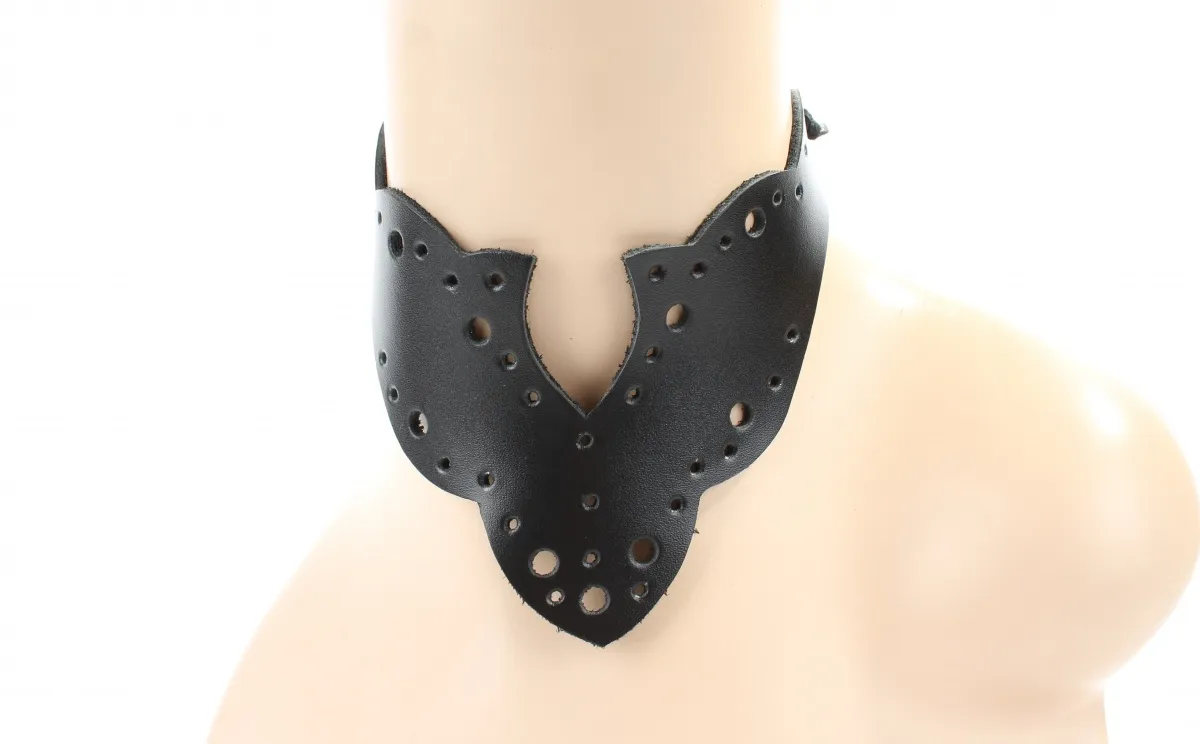 Чокер выполнен из натуральный черной гладкой кожи. Аксессуар фиксируется шнурком сзади, размер универсальный.Резной узор и оригинальная перфорация прекрасно подчеркнет вашу индивидуальность и станет очень изысканным дополнением к образу. Материал: натуральная кожа Цвет: черный